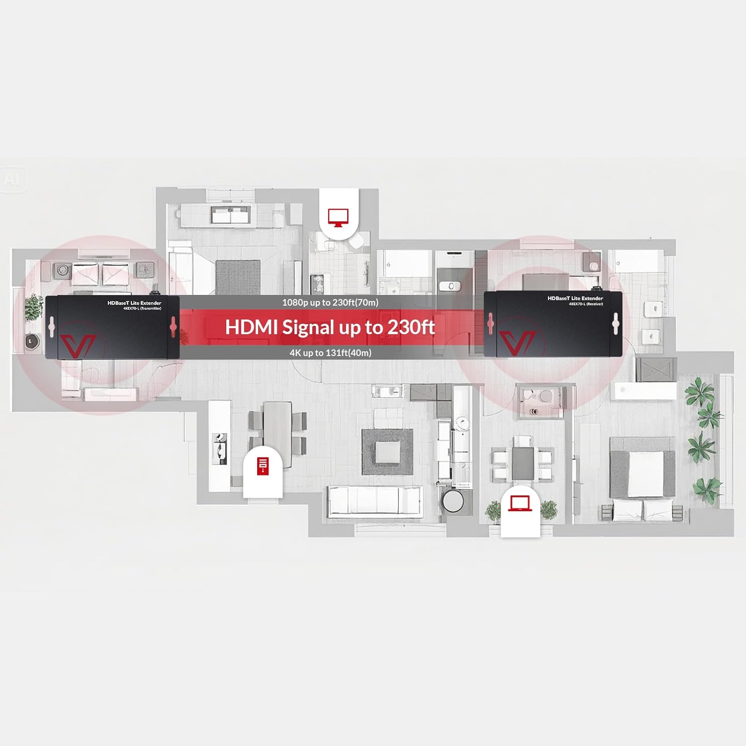 AV Access HDBaseT HDMI Extender Over Single Cat5e/6/6a/7 Ethernet Cable 4K@60Hz 130ft, 1080P@60Hz 230ft, UltraHD Supports CEC, Bi-Directional PoE, IR and RS232 Pass Through, EDID, HDCP 2.2 (4KEX70-L)