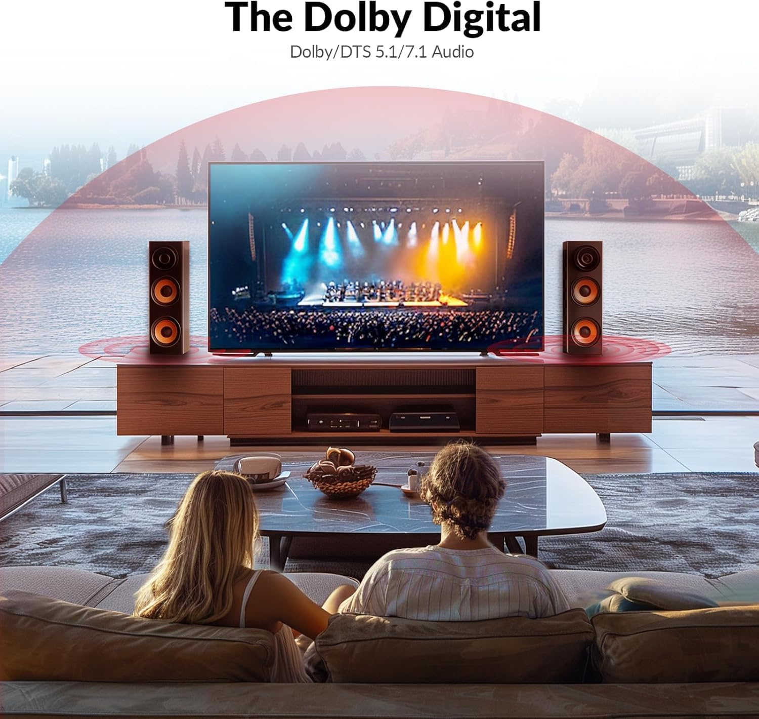 【4K@60Hz 4:2:0 8bit HDR】HDMI Extender supports 4K@60Hz up to 40m/130ft, 1080P@60Hz up to 70m/ 230ft over Cat5e/6a/7 cable. Audio Supports Dolby Atmos, DTS:X, Dolby TrueHD, DTS-HD Master, LPCM 2.1/ 5.1/ 7.1CH, providing great picture and fantastic audio.