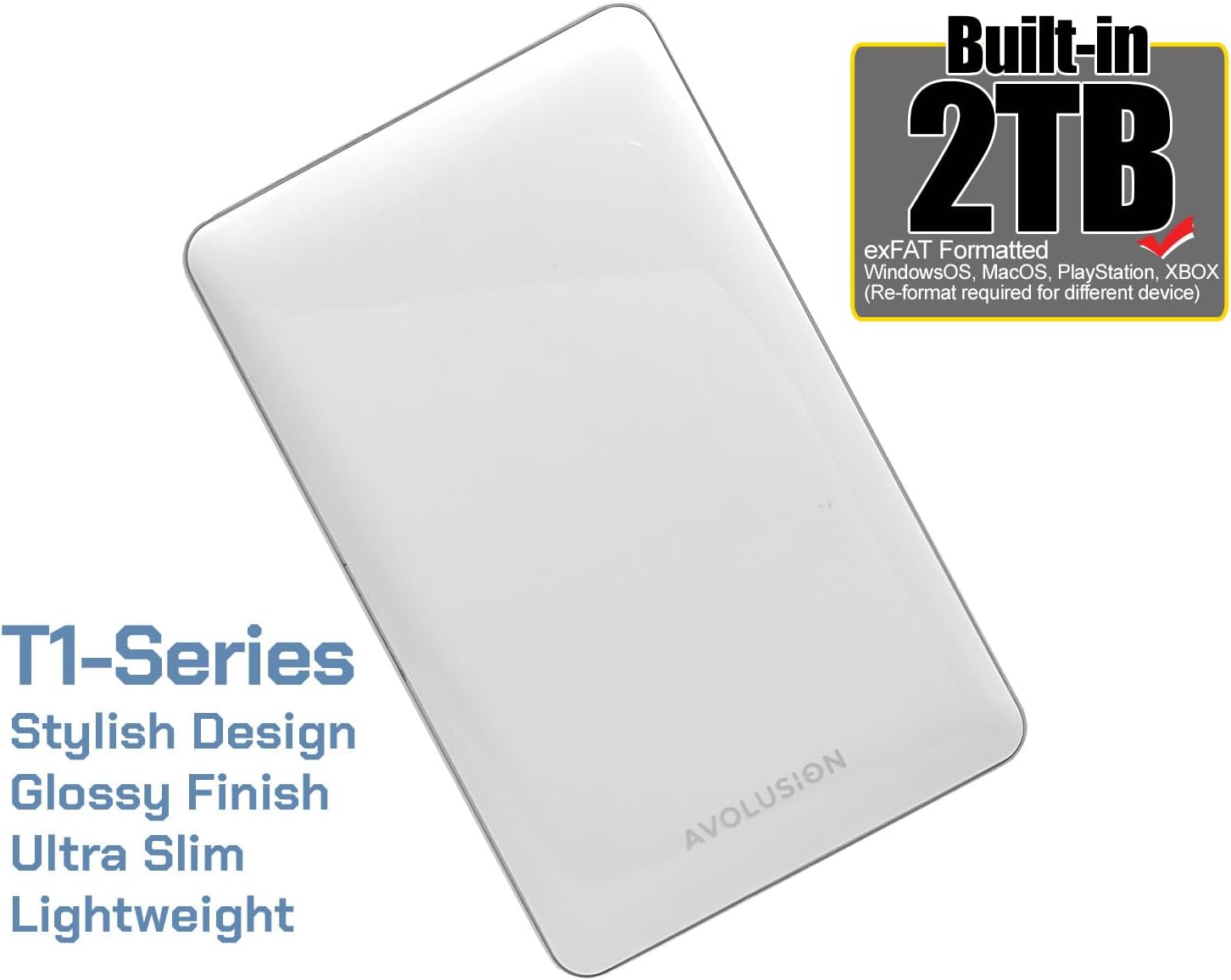 Avolusion External USB 3.0 Portable Hard Drive (T1 Series) 2TB Ultra Slim 2.5″ SuperSpeed USB 3.0 Portable External Hard Drive (White) is designed to attract the eyes of user at a glance with durable chassis external portable hard drive. Avolusion Mini Pro-5X White 2TB Portable hard drive endeavors top quality design in stylish HDD case, with slim trimming, which make the Avolusion Mini Pro-5X White 2TB Slim USB 3.0 External Hard Drive a fine piece of storage device on your palm.
