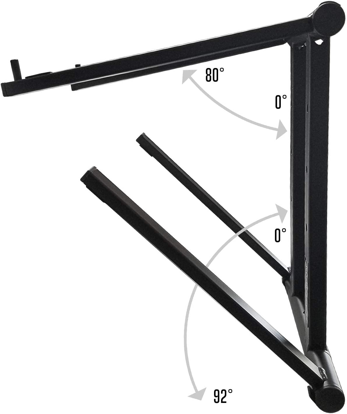 ✔ Three tier multi-purpose stand for laptops, DJ controllers, lighting controllers, small mixers and more.✔ Heavy-duty construction of machined aircraft grade aluminum.✔ Keeps your equipment cool and functioning properly.✔ Additional adjustable shelf for audio interface, or other electronics.✔ Saves space on the work surface by elevating laptop 14″ higher.✔ Push button safety locks to secure in place when set up.✔ Rubber padding on all surfaces that contact your valuable laptop.✔ Available in either black or white finish.✔ Fully collapsible, lightweight and compact when folded.✔ Sets up in seconds.✔ Easy to store and transport.✔ Includes AxcessAbles carry bag to protect the finish when not in use.