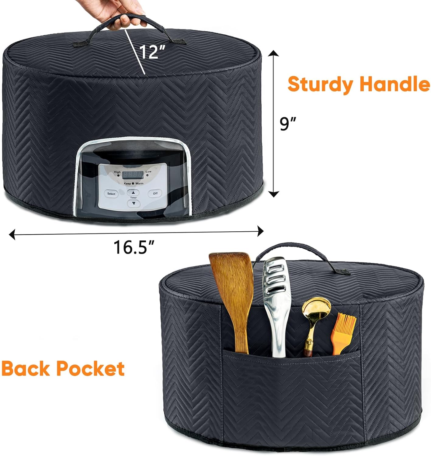 🔹 DUST PROTECTION + HEAT RETENTION: This multipurpose appliance cover keeps your slow cooker dust-free while stored, and helps maintain warmth during transport to potlucks, tailgates, or family gatherings. Also helps prevent spills during travel.