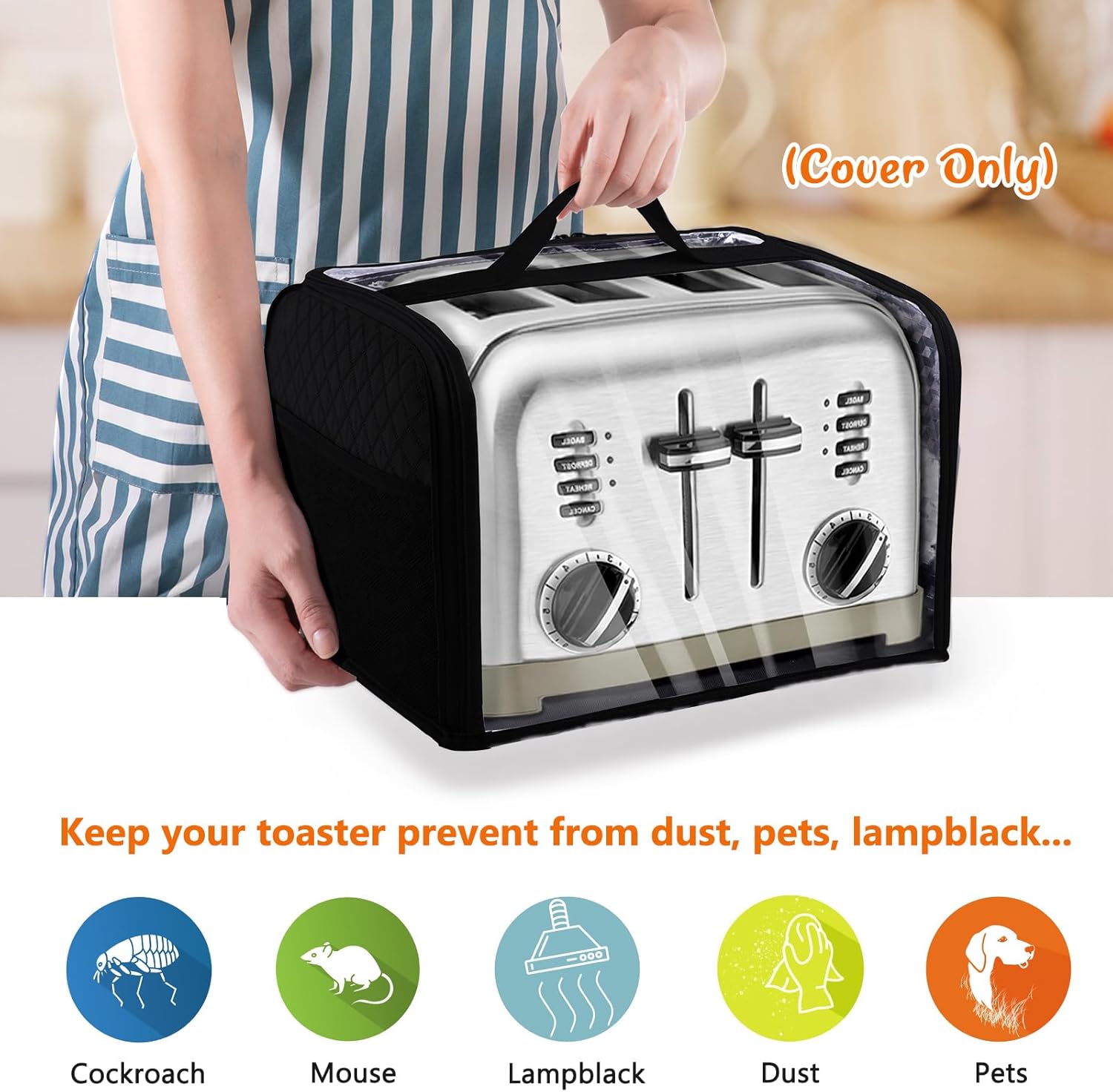 [Full Coverage Protection] This toaster cover is designed to fully encase your 4-slice toaster, including the bottom. It keeps out dust, ants, and other debris—perfect for keeping your toaster clean and protected at all times. (Note: Toaster not included. Please check size compatibility before purchase.)