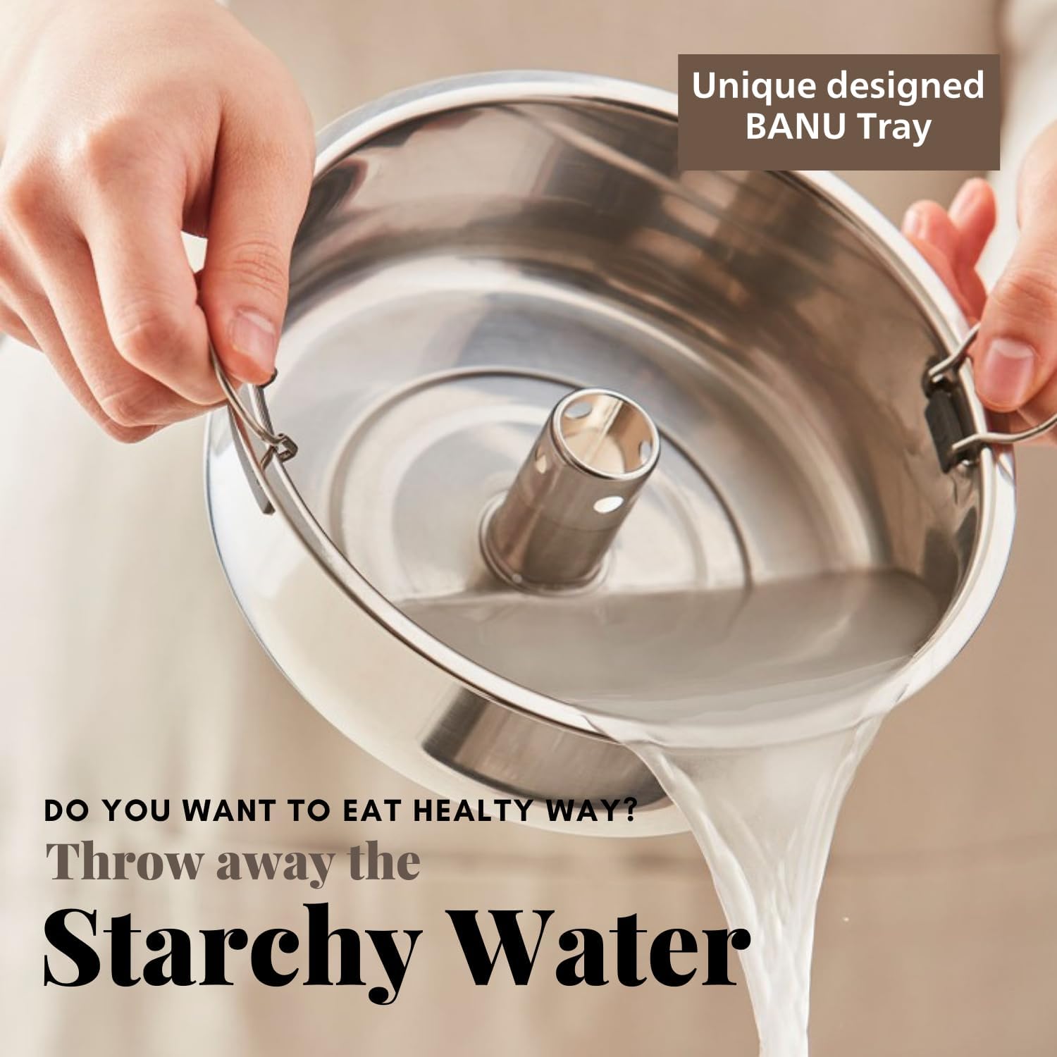 Healthy Eating Made Easy: The Banu Low-Carb Rice Cooker is a groundbreaking kitchen appliance designed for health-conscious individuals. By utilizing a unique starch-reduction tray, this cooker efficiently separates and expels excess starch from rice, significantly reducing its carbohydrate content. This feature is a boon for those following a low-carb or diabetic-friendly diet, ensuring that you can enjoy your favorite rice dishes without the guilt.