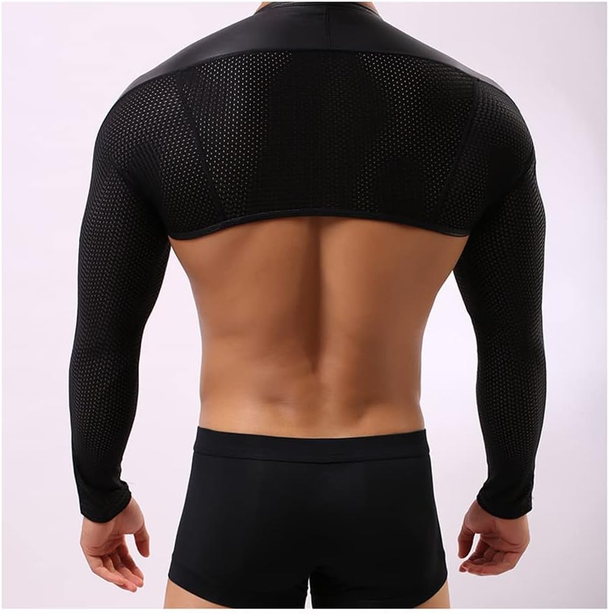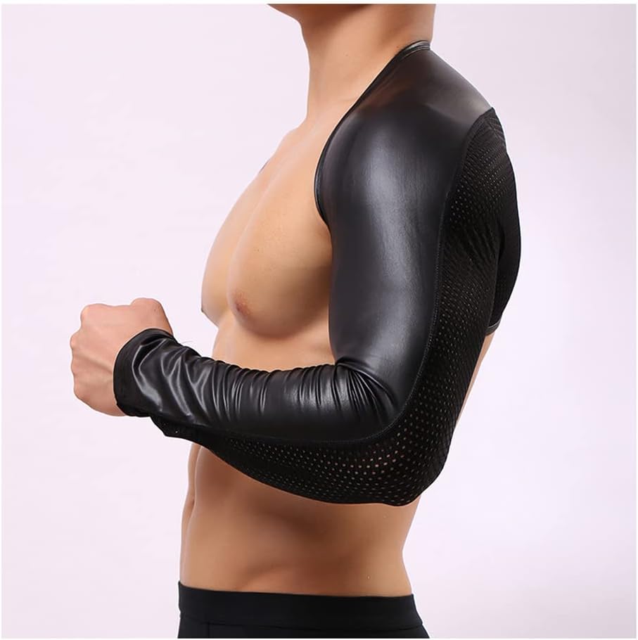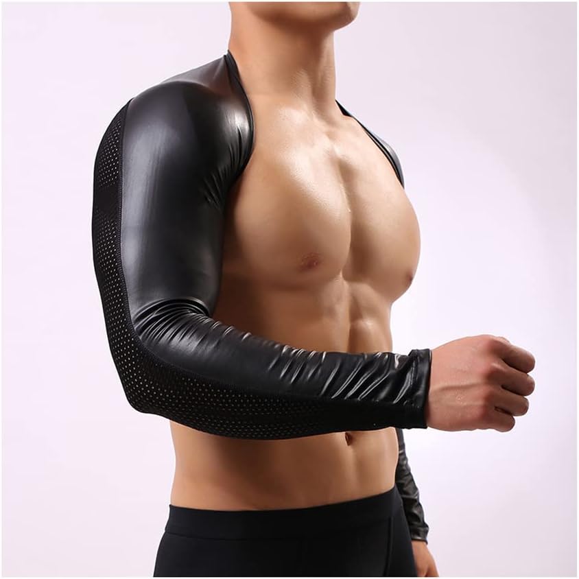 BaronHong Mens Faux PU Leather Hollow Arm Sleeves Shrug Fashion Stage Catwalk Show