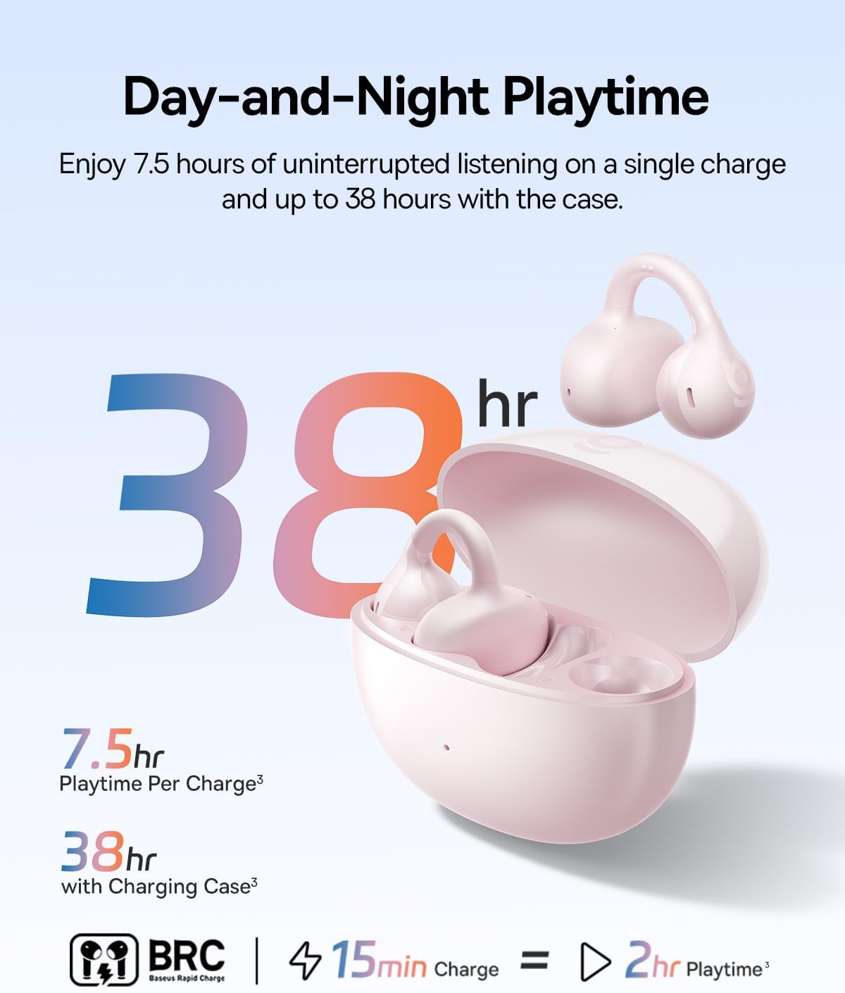 Open-Ring Comfort & Style: Stay aware and stylish with the Baseus Bass BC1 clip on wireless earbuds. The open-ring, non-intrusive design offers breathable, pressure-free comfort without blocking your ear canal—ideal for glasses wearers and earring lovers. Enjoy music and your surroundings at once with these lightweight open-ear earbuds