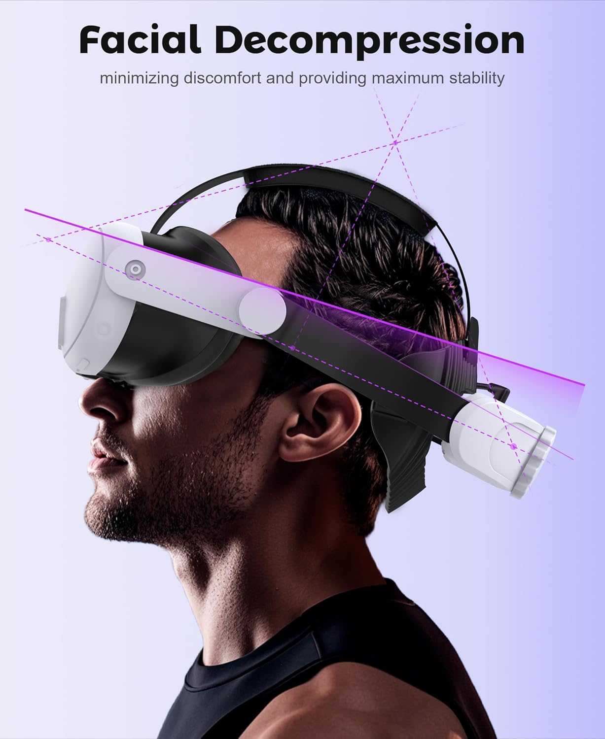 【Elite Strap Comfort – Adjustable & Ergonomic 】Engineered with ergonomic principles, our quest 3 head strap with battery pack features a rotary knob with gear-based adjustment, The precision gear-adjustment knob delivers a custom, snug fit for any head shape. Adjust it effortlessly and enjoy hours of comfortable gameplay