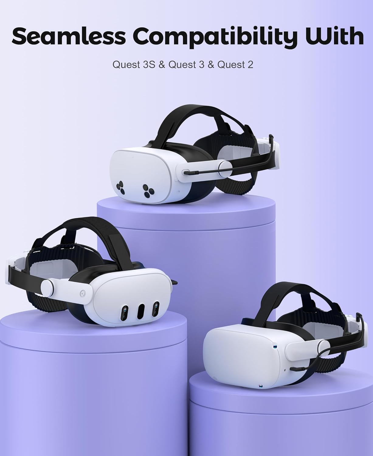 【Universal Compatibility – Fits Quest 2/3/3S】Upgrade your VR setup effortlessly! This head strap with battery is designed for Meta Quest 2, Quest 3, and Quest 3S, featuring interchangeable connectors for all models,includes screws and a screwdriver for quick installation. Enjoy a secure, comfortable fit whether you’re gaming or working in VR