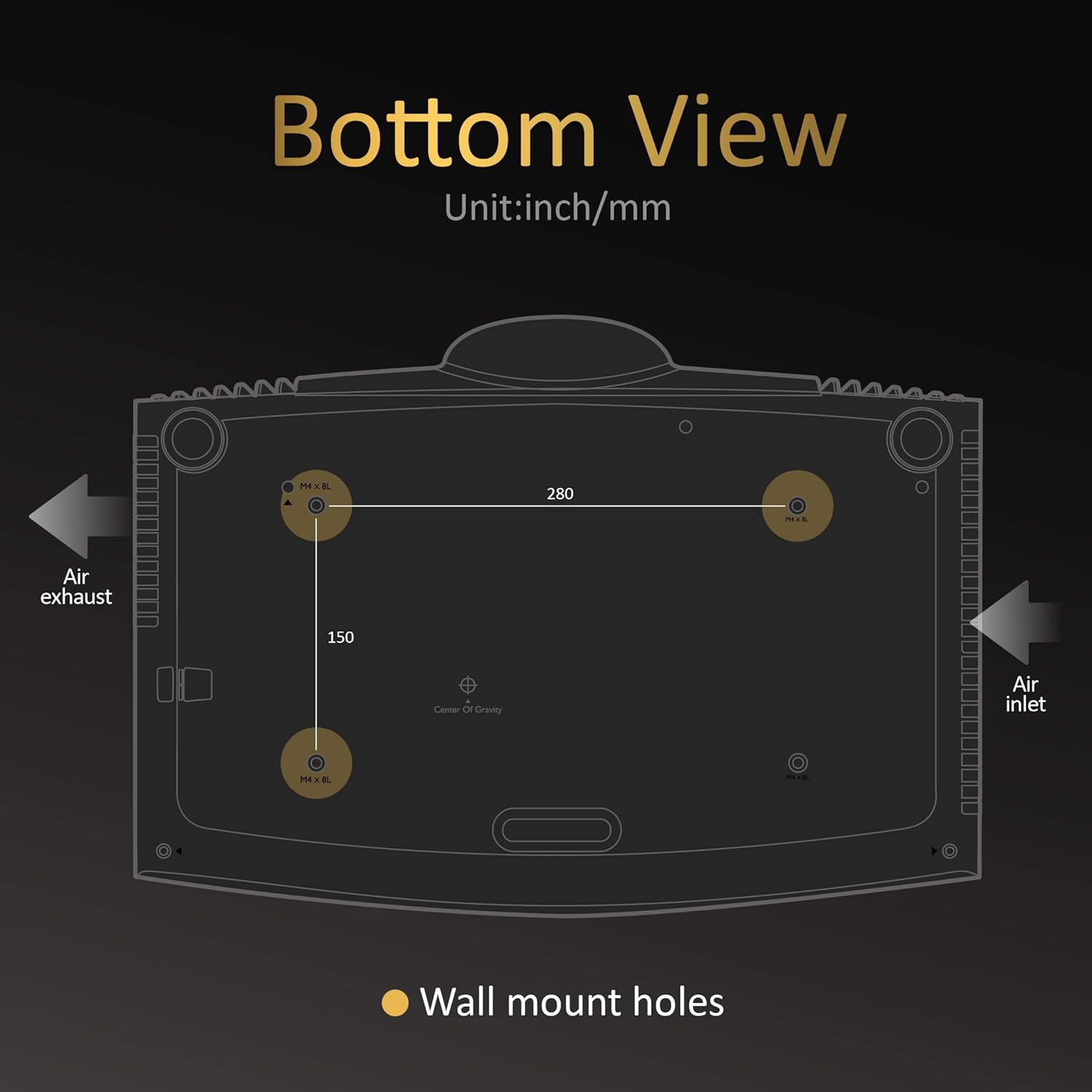 Main SpecificationsResolution – 4K UHD (3840 x 2160)Brightness (ANSI lumens) – 1800 ANSI LumensContrast Ratio (FOFO) – 100,000:1 (w/ Dynamic Iris)All SpecificationsDisplayProjection System – DLPResolution – 4K UHD (3840 x 2160)Resolution Support – VGA (640 x 480) to 4K UHD (3840 x 2160)Brightness (ANSI lumens) – 1800 ANSI LumensContrast Ratio (FOFO) – 100,000:1 (w/ Dynamic Iris)Display Color – 30 Bits (1.07 billion colors)Native Aspect Ratio – Native 16:9 (3 aspect ratio selectable)Light Source – LampLight Source Wattage – 245WLight Source Life – Normal 4,000 hr, Economic 10,000 hrs, SmartEco 10,000 hrsOpticalThrow Ratio – 1.36 2.18 (100″ @ 3 m)Zoom Ratio – 1.6XLens – F/# 1.81 2.1, f 14.3(Wide) 22.9(Tele)Lens Shift – Vertical: ± 60% / Horizontal: ± 23%Keystone Adjustment – 1D, Vertical ± 40 degreesImage Size – 60″ 200″ / 300″ (Clear Focus / Maximum)Horizontal Frequency – 15K-102KHzVertical Scan Rate – 23-120HzPicturePicture Mode – ISF Disabled: Bright / Vivid / Cinema (Rec. 709) / D. Cinema / Silence / 3D / User 1 / HDR / HLG ISF Enabled: Bright / Vivid / Cinema (Rec. 709) / D. Cinema/ Silence / ISF Night / ISF DayColor Wheel Segment – 6-Segment (RGBRGB)Color Wheel Speed – 2D: 96Hz ; 100Hz ; 120Hz 3D: 120HzRec.709 Coverage – 100%DCI-P3 Coverage – 100%InterfaceHDMI – x2 (HDMI 2.0b & HDCP 2.2)USB Type A – x1 (5V/2.5A power supply)x1 (USB 2.0 Media Reader/ Firmware upgrade)x1 (USB 3.0 Media Reader/ Firmware upgrade)USB Type mini B – x1 Firmware upgradeAudio out (3.5mm Mini Jack) – x1 Audio out (S/PDIF) – x1 (Only support 2-channel audio)LAN (RJ45) – x1 RJ-45 LAN input jack (10/100M)RS232 (DB-9pin) – x1 RS232 In (D-sub 9pin, male)DC 12V Trigger (3.5mm Jack) – x1 (3.5mm Jack)IR Receiver – x2 (Front/Top)Wired Remote in (3.5mm Mini Jack) – x1Special FeatureHDR – Yes (HDR10, HLG)Motion Enhancer (MEMC) – YesISF Night/ Day – YesLAN control – YesCinemaMaster Video – Yes (4K Motion Enhancer, 4K Pixel Enhancer, Color Enhancer, Flesh Tone).