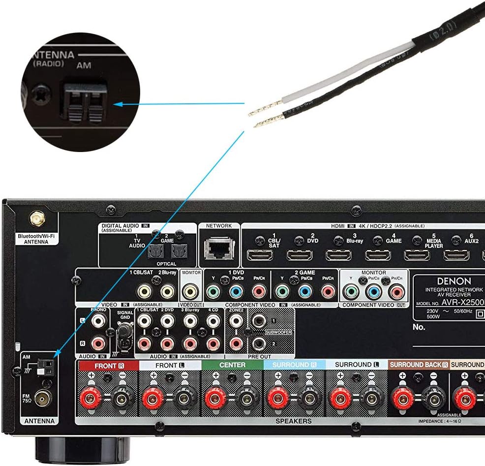 This AM antenna has 2 pin tin-plating bare wire to connect the AM antenna jack of stereo receiver radios;