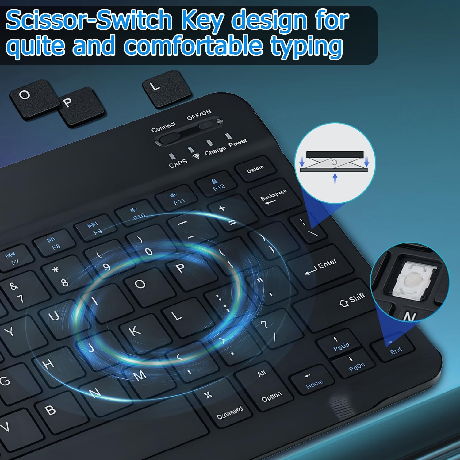 【Comfortable Scissor-Switches Quiet Typing】The bluetooth keyboard has built with quiet and responsive scissor switches low-profile keys, offering laptop-like efficiently typing with comfort and quiet.