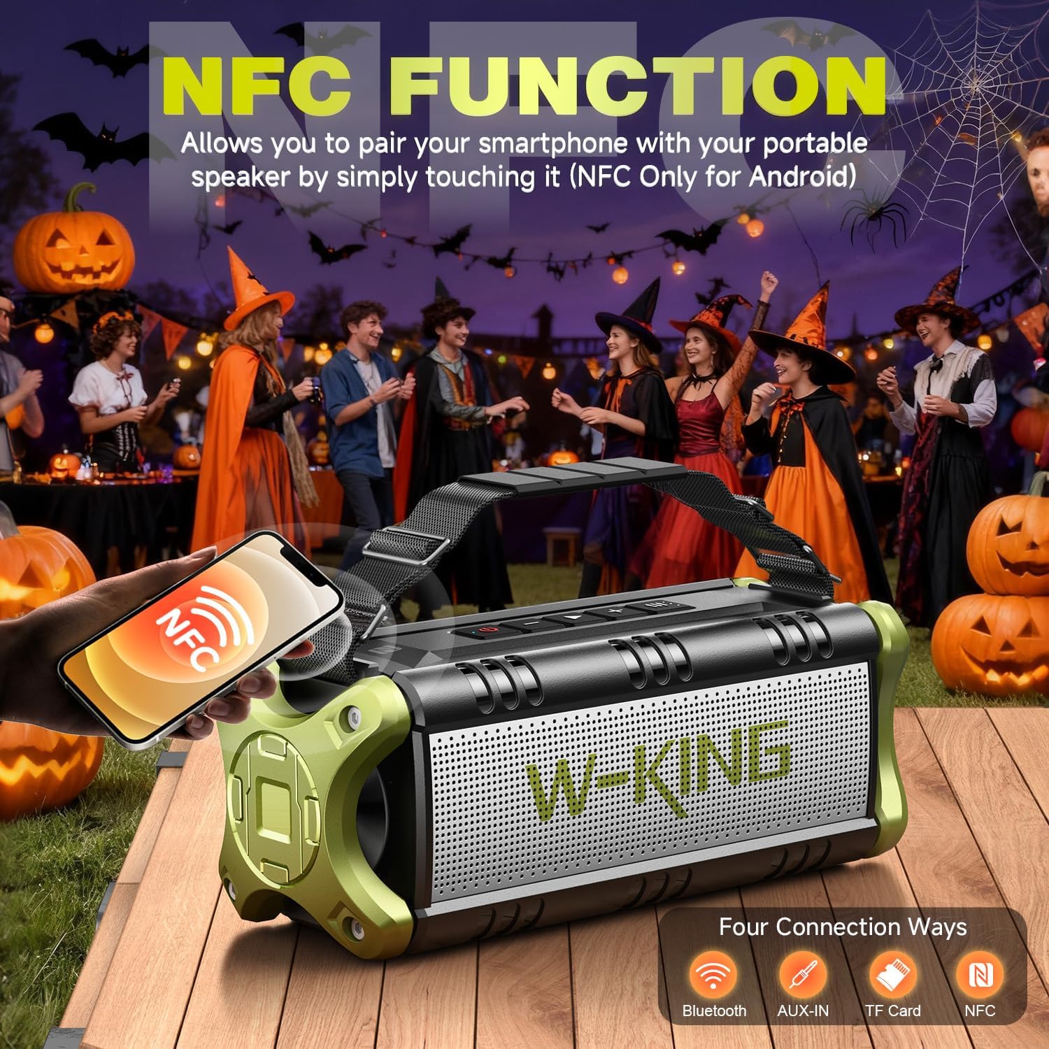Supported Advanced Bluetooth 5.0/AUX/TF Card & NFC Connection: With V5.0 wireless bluetooth speaker, you can communicate with the phone assistant and never worry about sudden Bluetooth disconnection while using! Have a wireless connection range of 100ft, creating a fast and stable signal transmission. The wireless speaker support 3.5mm AUX and TF-Card. NFC connection allows you to pair your smartphone with the waterproof speaker by simply touching it (NFC Only for Android)