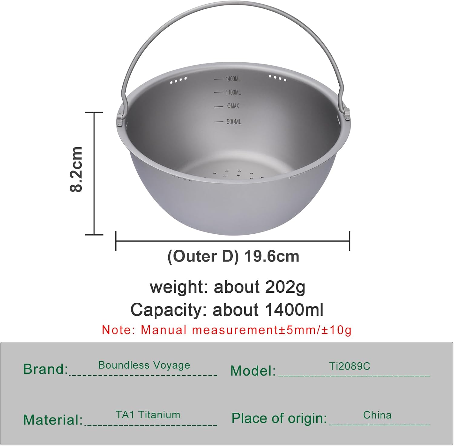 Enjoy Cooking Anywhere You Go: Titanium camping cookware is designed for outdoor enthusiasts who love camping with family and friends. It is super portable, making it much more convenient for camping, hiking, backpacking, picnics and other outdoor activities.Multifunctional Cooker: Suitable for a variety of scenarios, Rv travel, backpacking, hiking,family camping picnic, daily use.