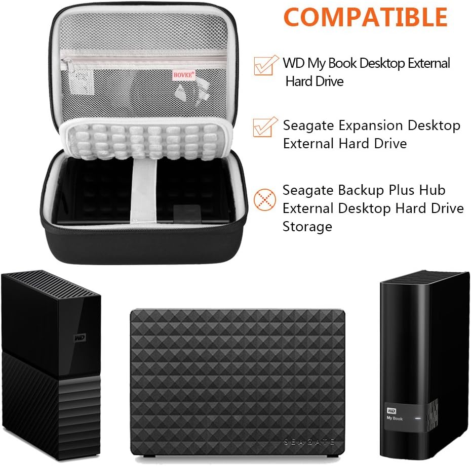 External dimension: 7.9 x 6.1 x 4.7 inch, Internal dimension: 7.37 x 5.75 x 2.07 inch. This solid shell bag will fit seagate expansion desktop 2tb 3tb 4tb 5tb 8tb 10tb 12tb 14tb desktop external hard drive hdd usb 3.0, western digital wd elements / my book desktop hdd 3tb 4tb 6tb 8tb 10tb 12tb 14tb usb 3.0 external hard drive.