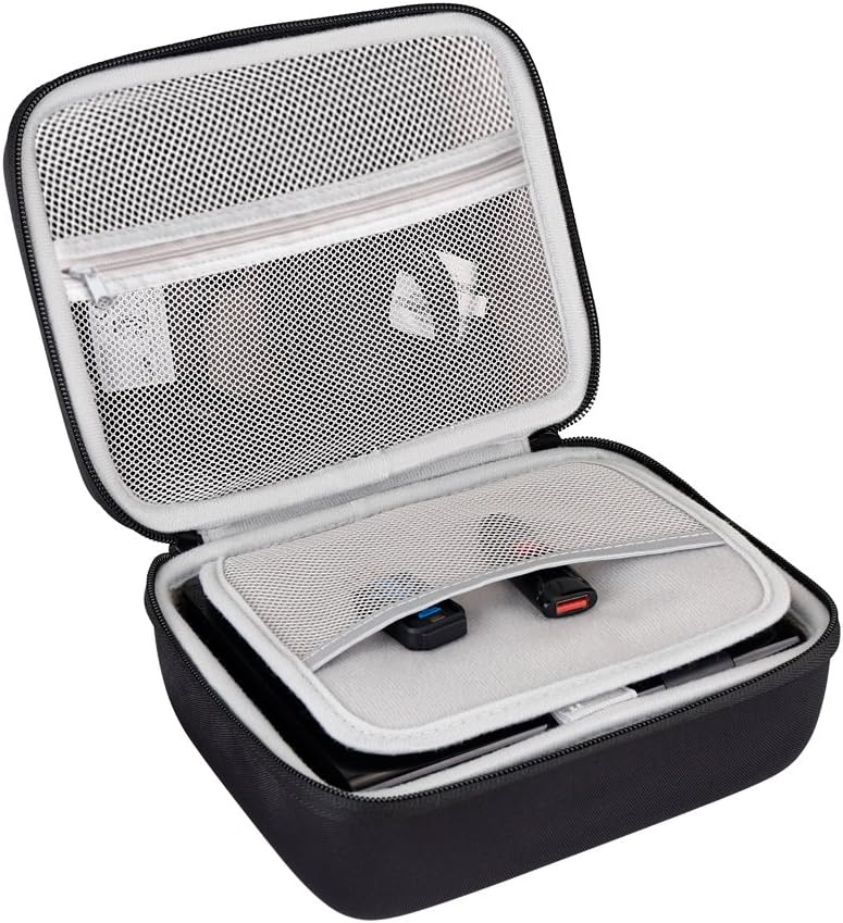 [Functional Design]: This well-constructed case has a very comfortable handle that allows for convenient portability on the go. Double zippers are easy in opening and closing. Elastic band with Velcro can prevent any movement of the drives inside, and keeping your equipment securely stored when traveling or when not in use.