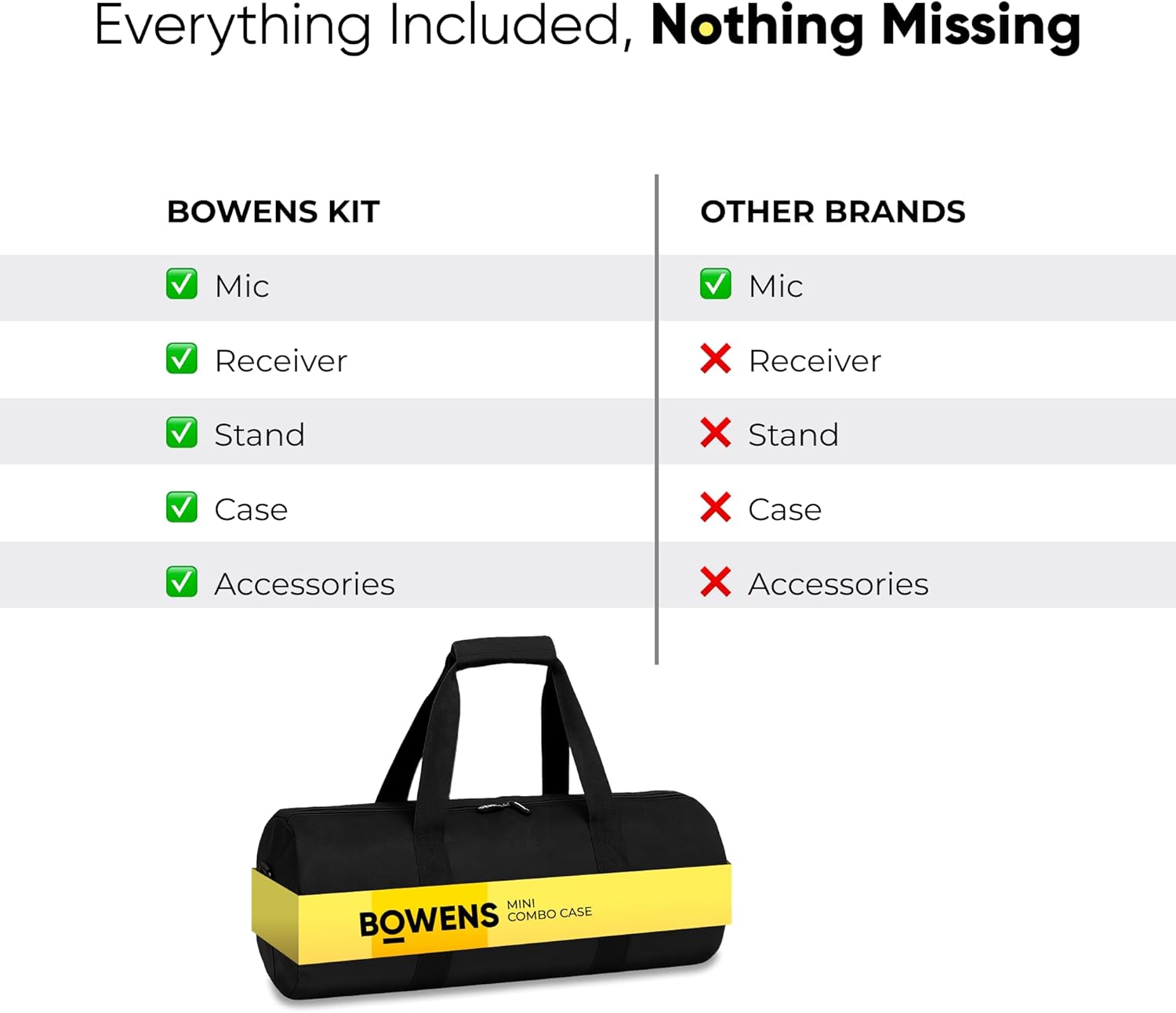 Bowens Wireless Microphones – Handheld Wireless mic with Microphone Stand, Hard case and Accessories – Adjustable 18-70″ Microphone Stand for Karaoke, Events