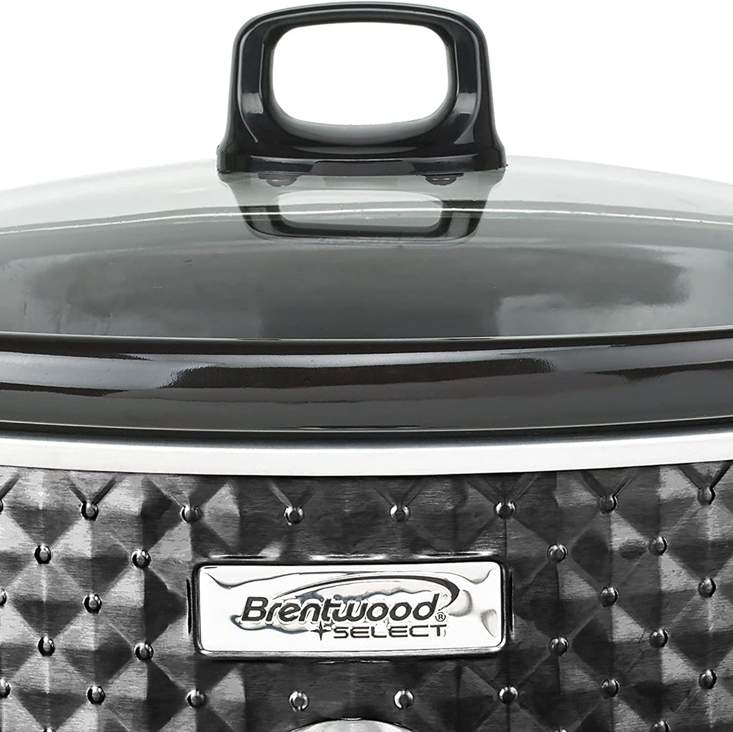 Brentwood SC-136BK 190W 3.5 Quart Adjustable Temperature Dishwasher Safe Kitchen Slow Cooker Pot with Clear Glass Lid, Diamond Black
