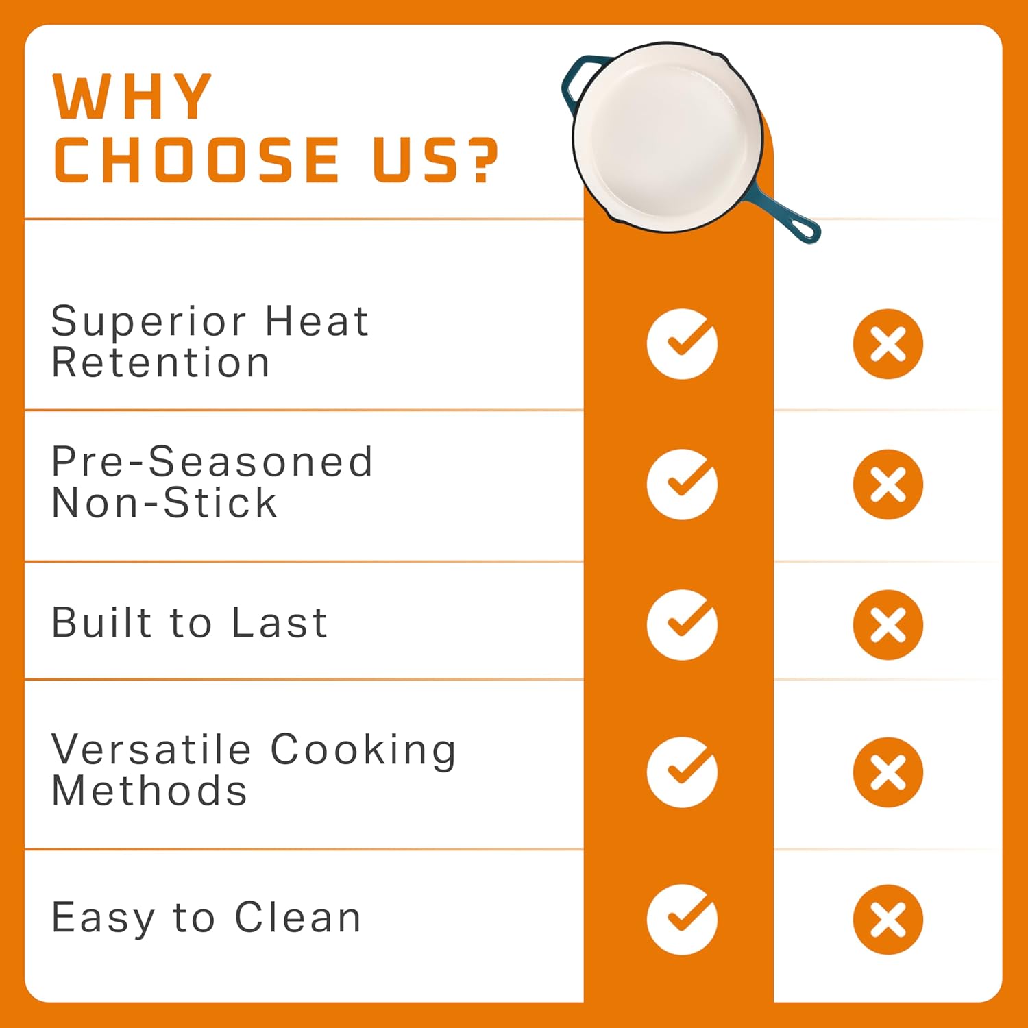 DURABLE & LONG-LASTING: Crafted from premium cast iron, this skillet withstands high heat and daily use. Built for generations, it’s a dependable kitchen essential for every home cook.