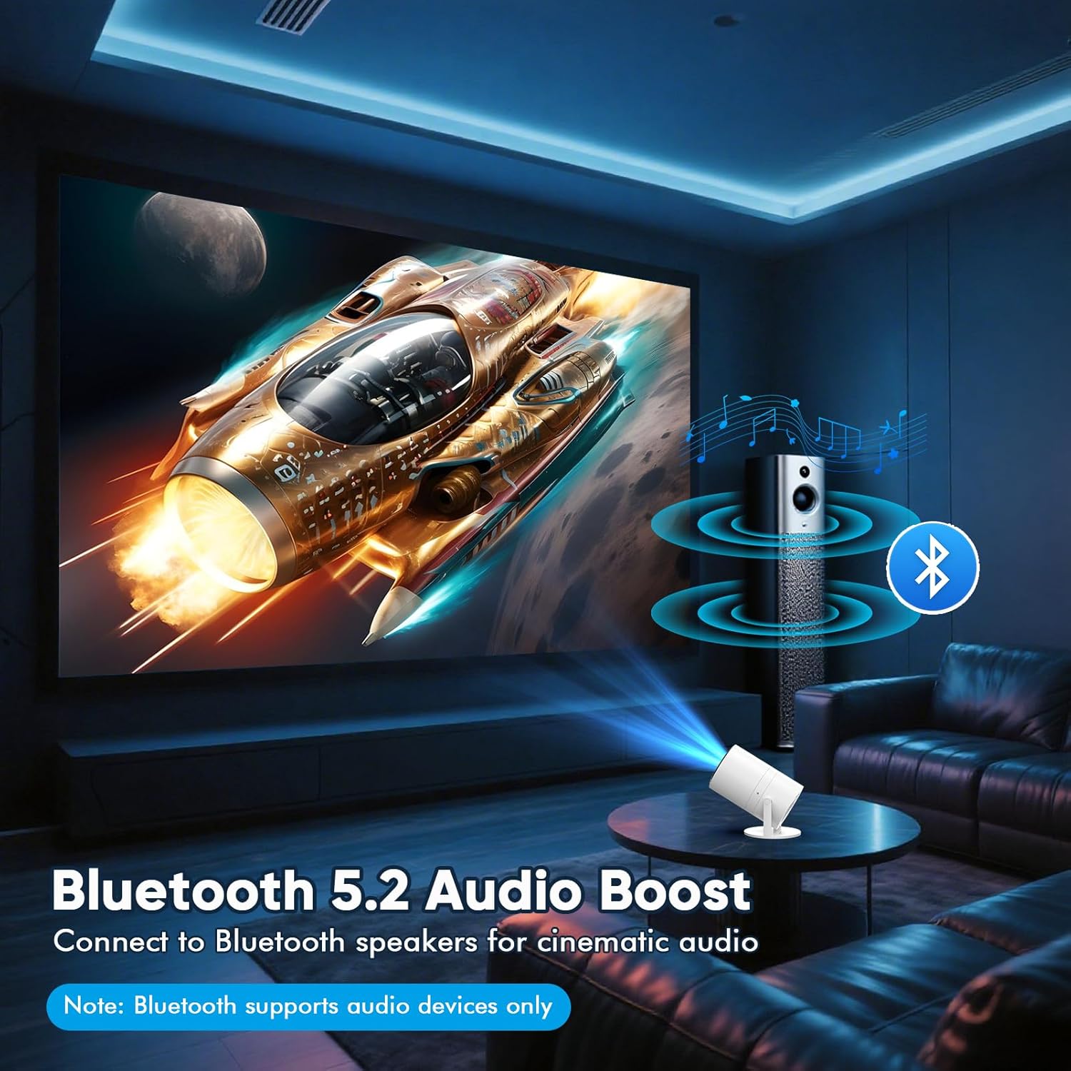[Projector with WiFi and Bluetooth] Connect your portable projector to Bluetooth speakers for richer, more immersive sound, or pair it with headphones for private viewing without disturbing others. Please note: the Bluetooth function is only for audio devices and cannot be used for smartphone screen mirroring