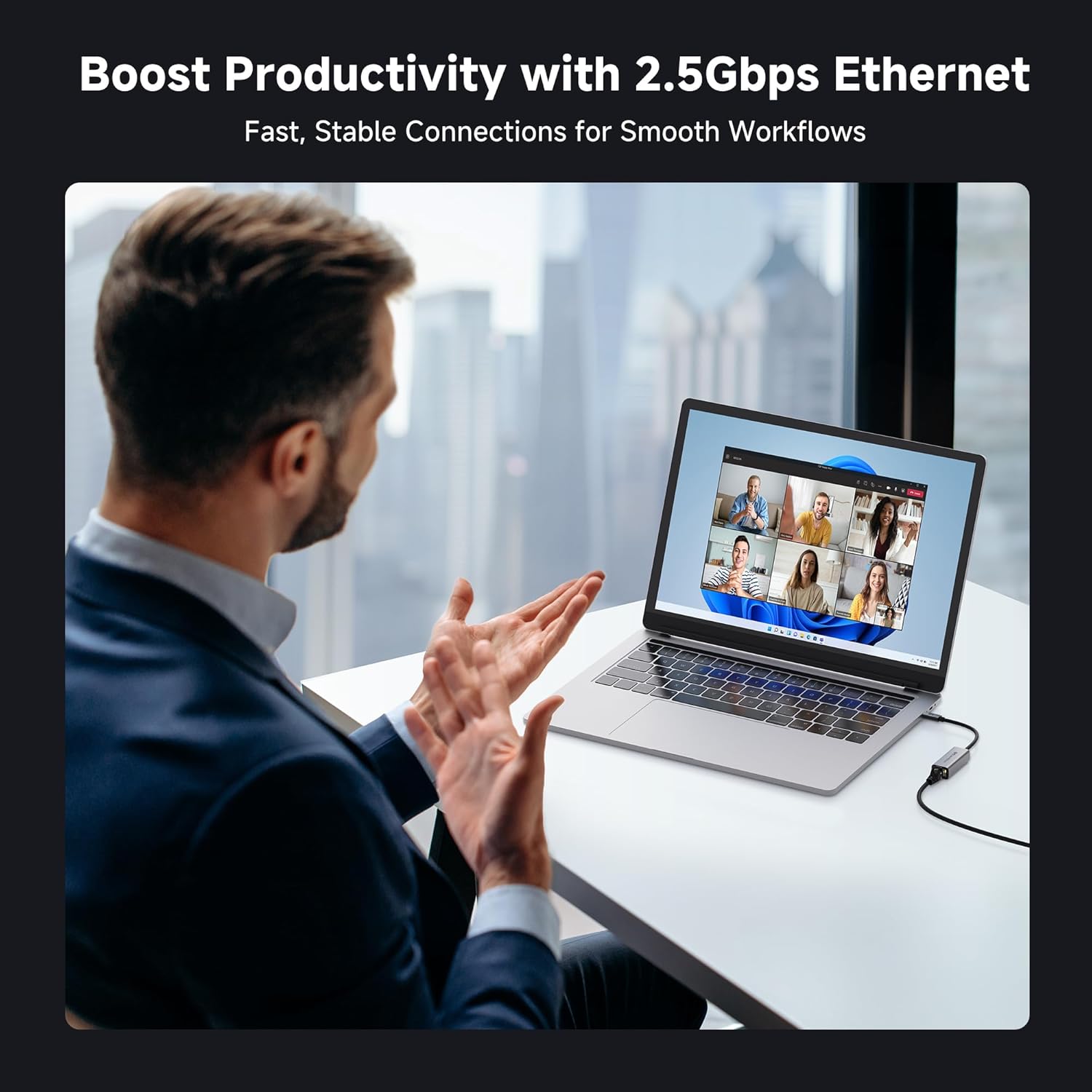 Stable Performance with Advanced Chipset: This USB C Ethernet adapter 2.5 Gigabit ensures consistent performance while minimizing power consumption and heat. Enjoy uninterrupted, high-speed connections, offering faster and more secure network access than wireless and most wired solutions.