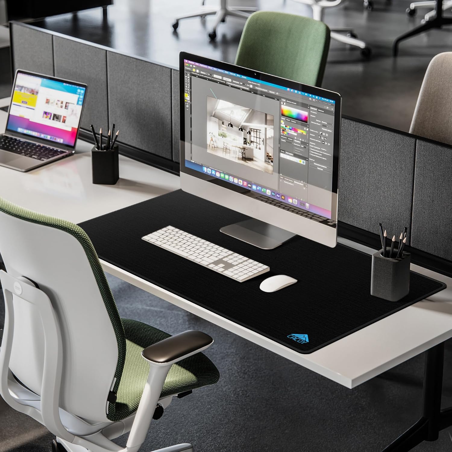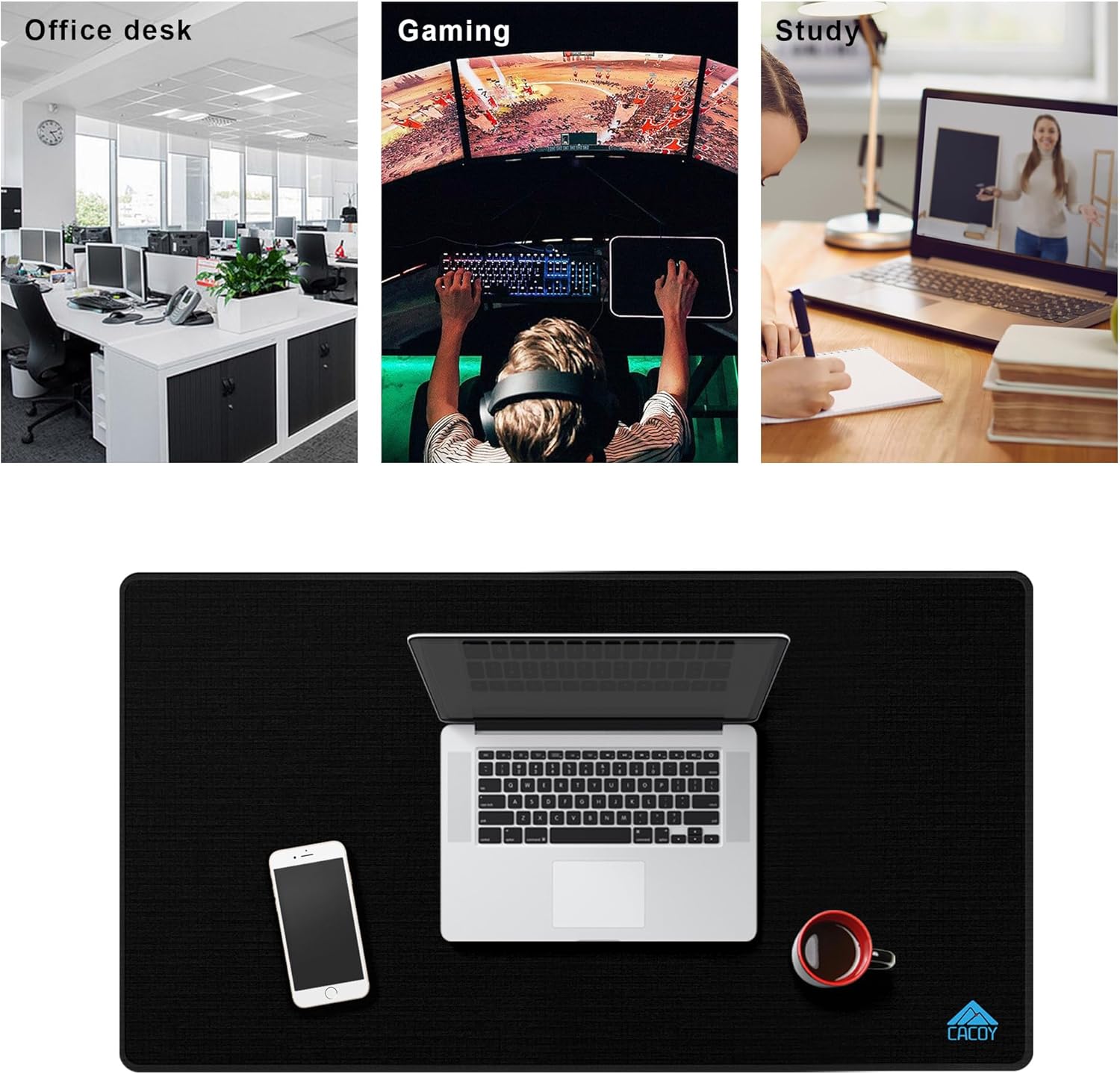 Cacoy 36″ x 20″ Large Mouse Pad, Desk Mat Office Desk Pad Gaming Mouse Mat with Stitched Edges, XXL Keyboard Mousepad with Non-Slip Waterproof Rubber Base for PC Laptop Home Office Accessories, Black