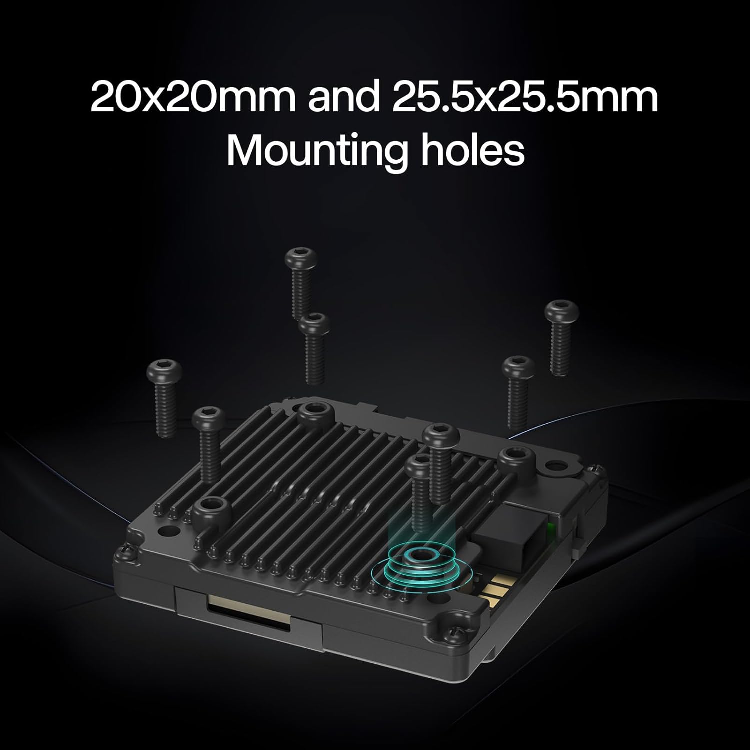 Compact, Lightweight, and Versatile: Weighs just 33g to reduce drone load. Smart layout fits both 20×20mm and 25.5×25.5mm mounting patterns, with dual power connection options for easy installation on most FPV drone and RC Cars frames