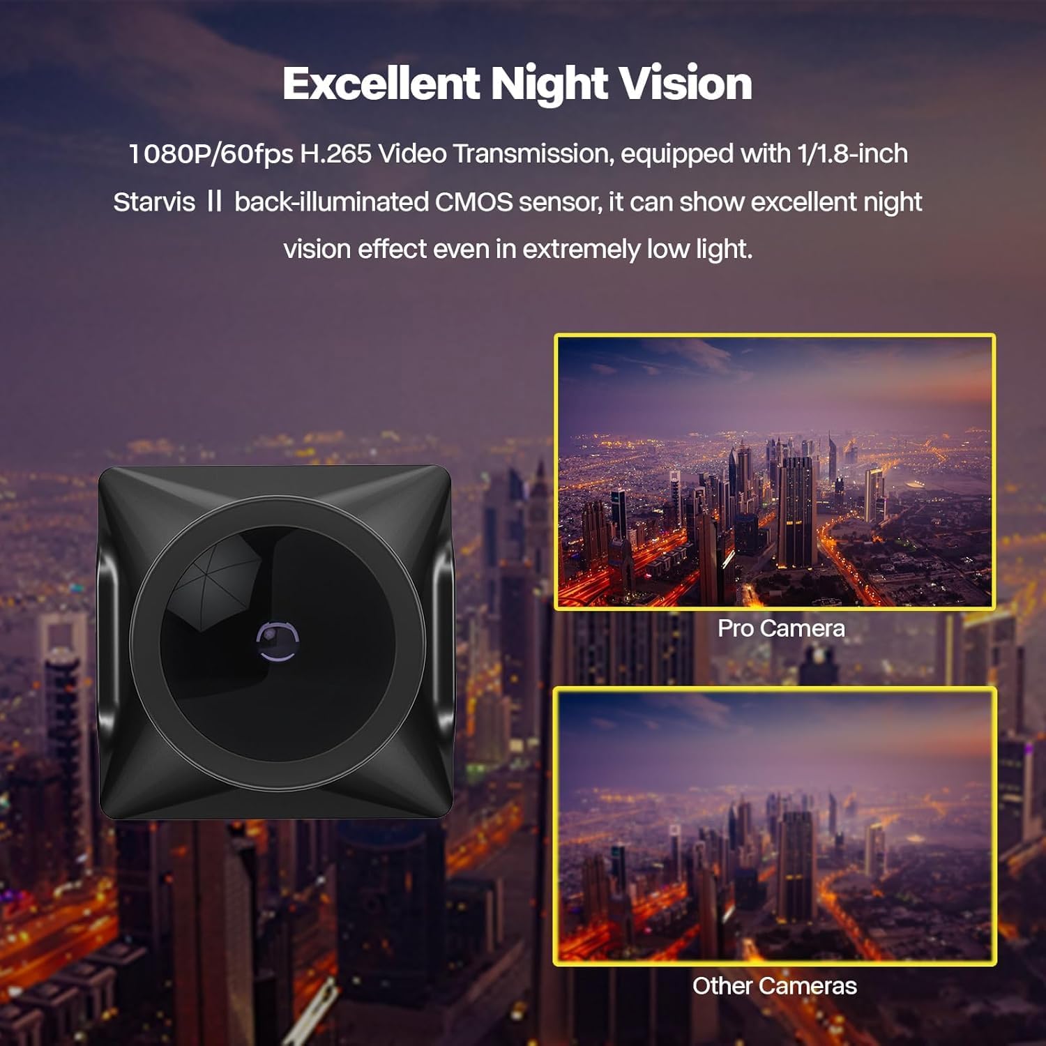 Crisp 1080P/60FPS with Night Vision: Powered by a large 1/1.8-inch Starvis II sensor and advanced H.265 encoding, capture every detail in stunning clarity, day or night. Perfect for city skyline flights or forest trails after sunset