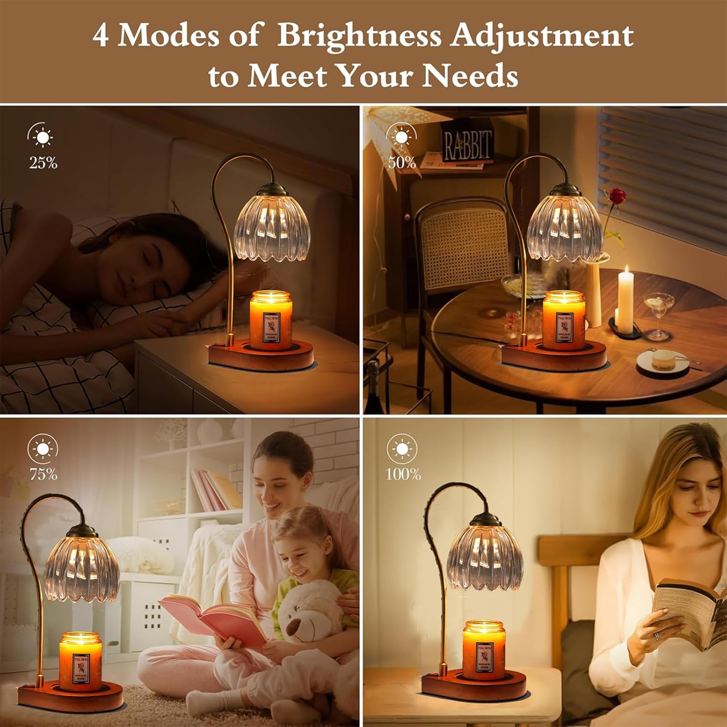 𝐂𝐨𝐳𝐲 𝐕𝐢𝐛𝐞𝐬 𝐟𝐨𝐫 𝐌𝐚𝐧𝐲 𝐎𝐜𝐜𝐚𝐬𝐢𝐨𝐧𝐬: This candle lamp can promote a restful sleep while sleeping, create a calm and tranquil environment for yoga or meditation, enhance your focus while studying or working, contribute to a romantic and pleasant dining experience and more. Let this candle warming lamp accompany you to enjoy every warm cozy vibe and precious moment of life