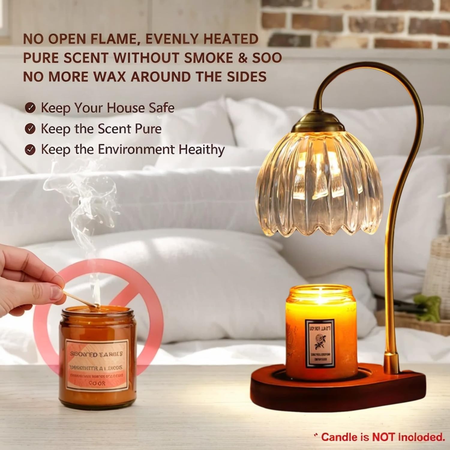 𝐌𝐚𝐤𝐞 𝐅𝐫𝐚𝐠𝐫𝐚𝐧𝐭 𝐂𝐚𝐧𝐝𝐥𝐞𝐬 𝐌𝐞𝐥𝐭𝐬 𝐌𝐨𝐫𝐞 𝐄𝐚𝐬𝐢𝐥𝐲: Goldprice candle warmer lamp melts aroma candles in a cleaner, more efficient and long-lasting way. It melts the scented wax inside the candle jar by heat released from a 50 watt GU10 halogen heating bulb. Natural release of fragrance within minutes. No flames, no soot, no indoor pollution, reducing the risk of fires caused by igniting candles