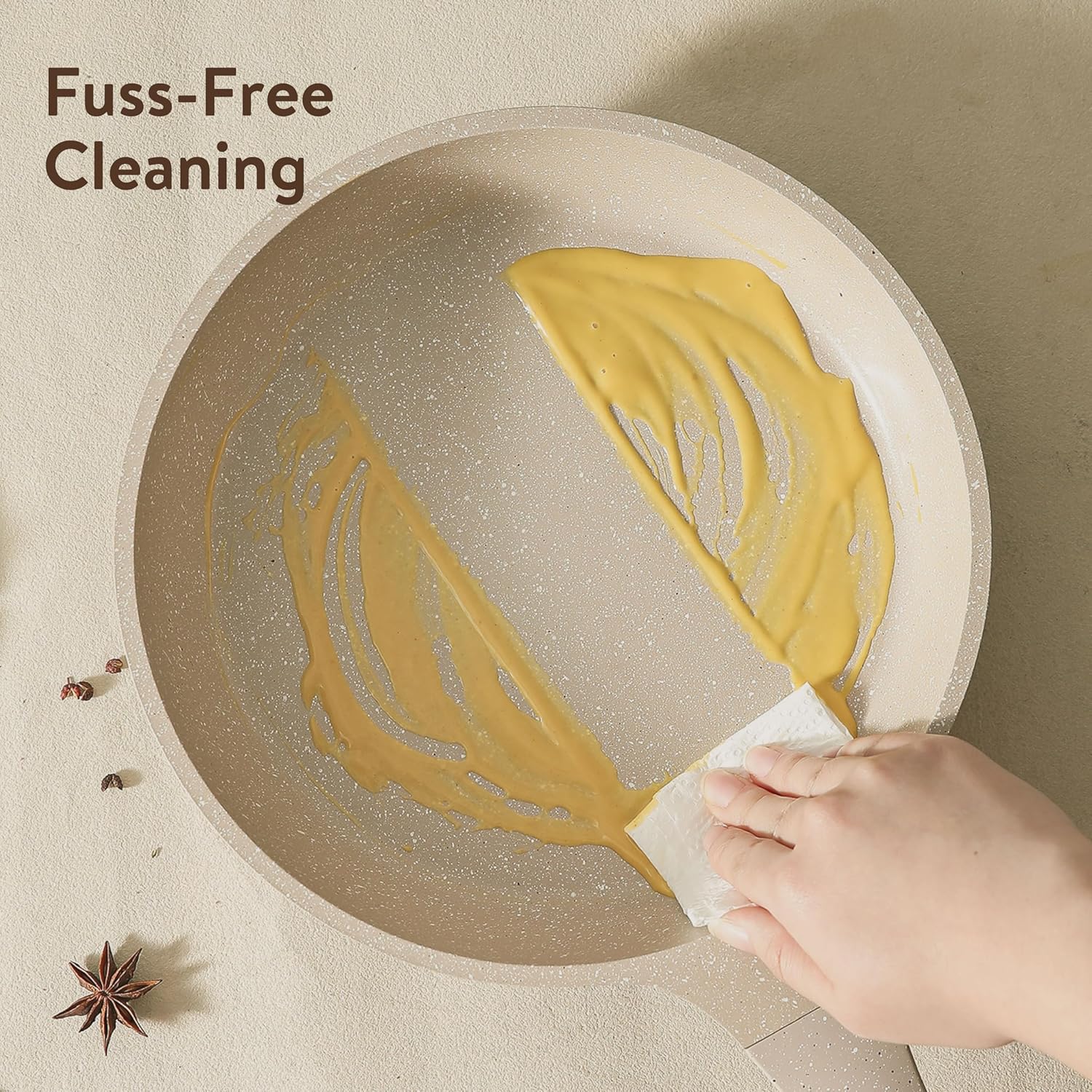 A top-level, harder nonstick granite material with 10x Ultra Non-stick performance ensures your daily cooking always safer and healthier.