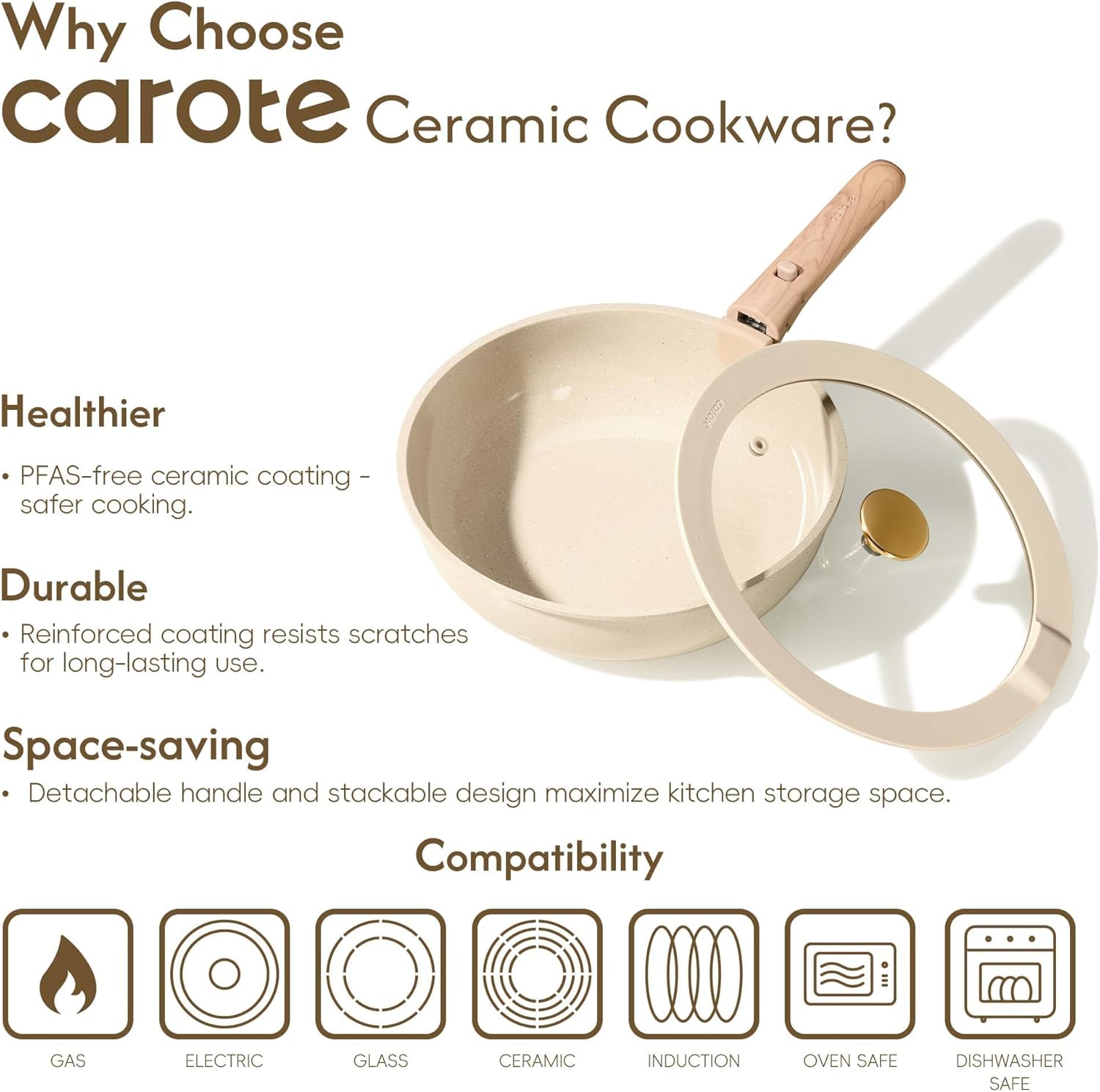 CAROTE 23PCS Pots and Pans set Non Stick, Ceramic Cookware Set, RV Kitchen Cooking Set Removable Handles, Oven Safe, Induction Coolware, Non-toxic Kitchen Cooking Set, PFAS and PFOA Free