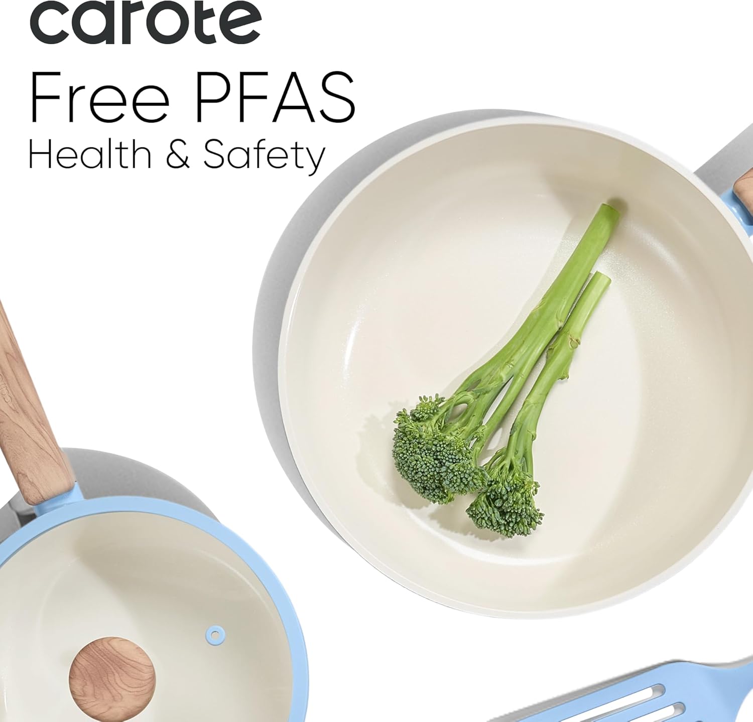 Ceramic nonstick coating with durability of perfection is free of PFOA, PFOS, and the other harmful chemicals. You can enjoy your cooking on carote cookware safely & easily.