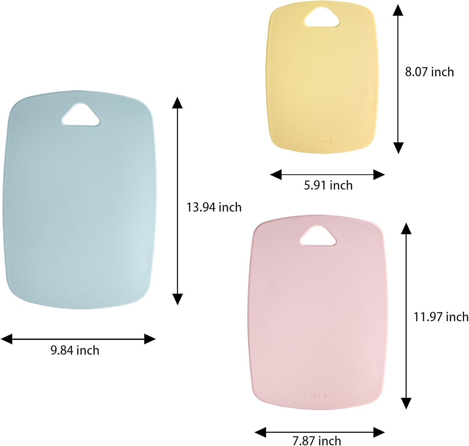 Carry and Storage Handle: Each of our hard plastic cutting board features an easy grip handle. This handle enables you to carry the boards around your kitchen and even use it to hang when drying and storing.