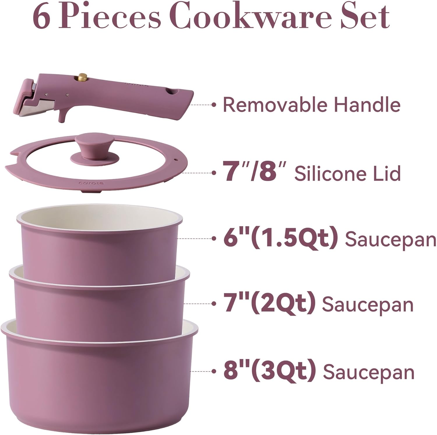 Set Includes: 1.5qt saucepan, 2-qt saucepan with lid, 3-qt saucepan with lid, 1*detachable handles.