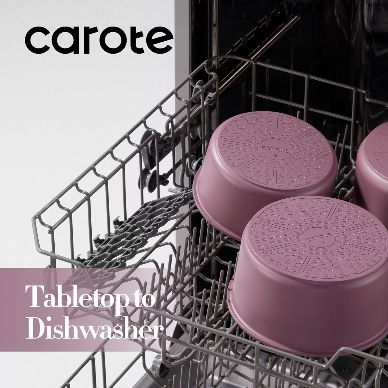 Optimal storage and easy stacking with the handles off saves up to 70% more space of Carote detachable handle pots and pans set, keeping your kitchen neat and organized.