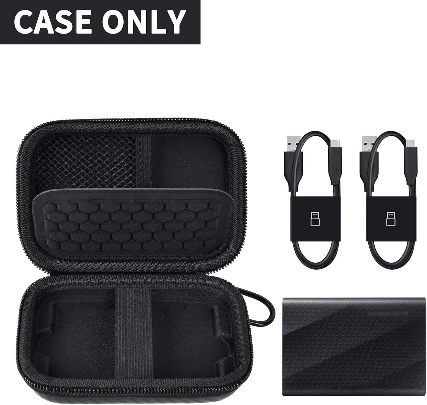 Easy to carry case for samsung portable external ssd: USB external ssd carrying box is very small and lightweight, can be put into a handbag, while with a mountaineering buckle, you can hang it on your backpack. Protective case for samsung storage drive is a great Christmas present for your family and friends, you can realize data transfer anytime and anywhere, meet the needs of work, entertainment, photography and so on.