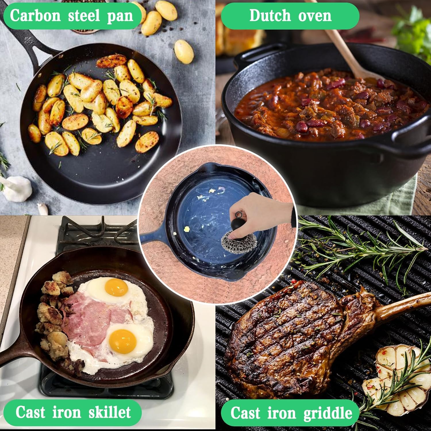 Cast Iron Chainmail Scrubber + Pan Scraper - Ergonomic Stainless and Silicone Cleaner for PotsCast Iron Chainmail Scrubber + Pan Scraper - Ergonomic Stainless and Silicone Cleaner for Pots