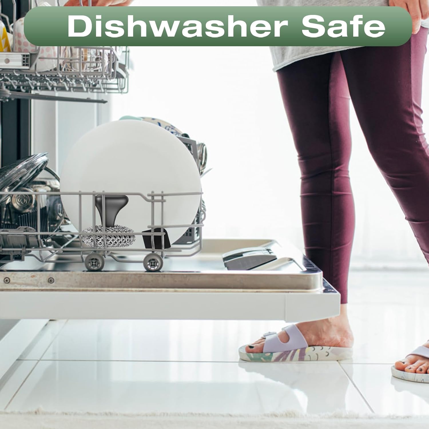 ✔️ The pot scrubber for kitchen and pan scraper tool is stain-resistant and non-stick, simply rinse under the tap or put in the dishwasher.