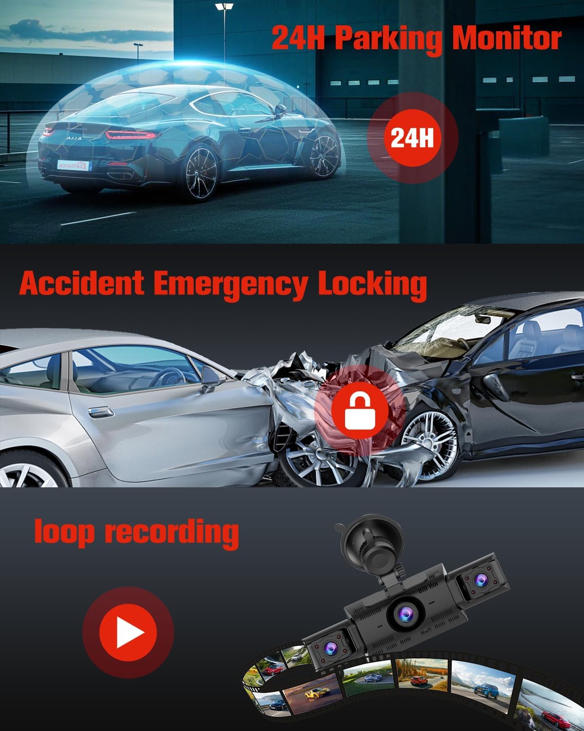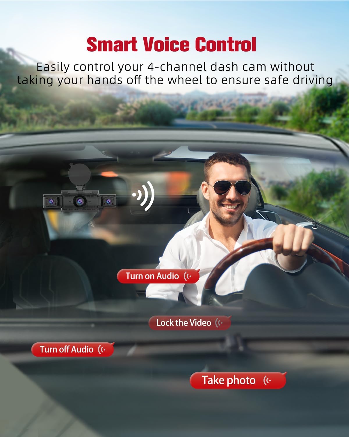 【Built-in WiFi – Evidence at Your Fingertips】Download 4-ch recordings —3x faster than standard dash cams. It pairs with a free app for Android or iOS, enabling seamless control, video preview, download, and sharing. Includes a free 64GB endurance card (supports 256GB)PLEASE NOTE: The APP is completely free to use. Please do not activate VIP functions in the APP