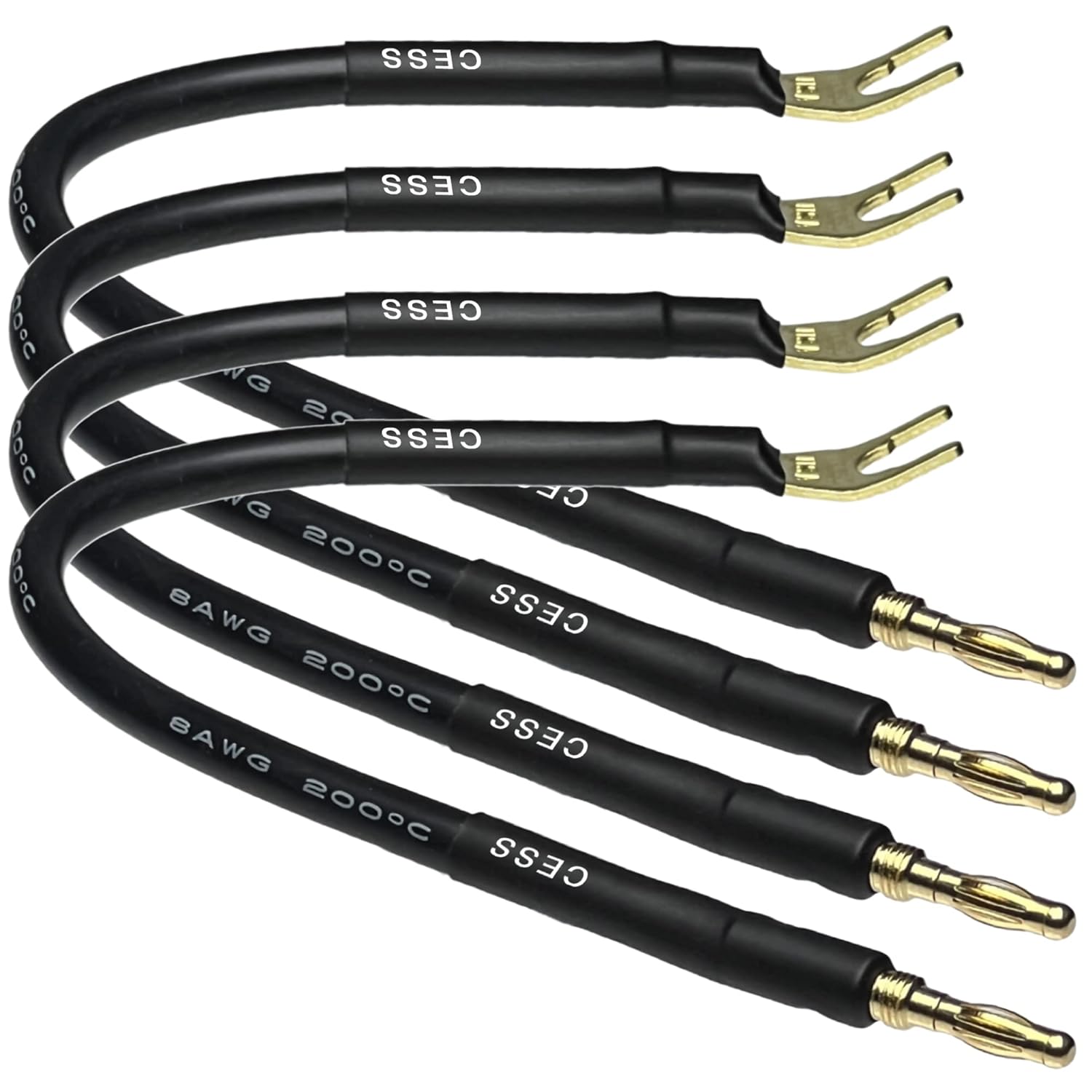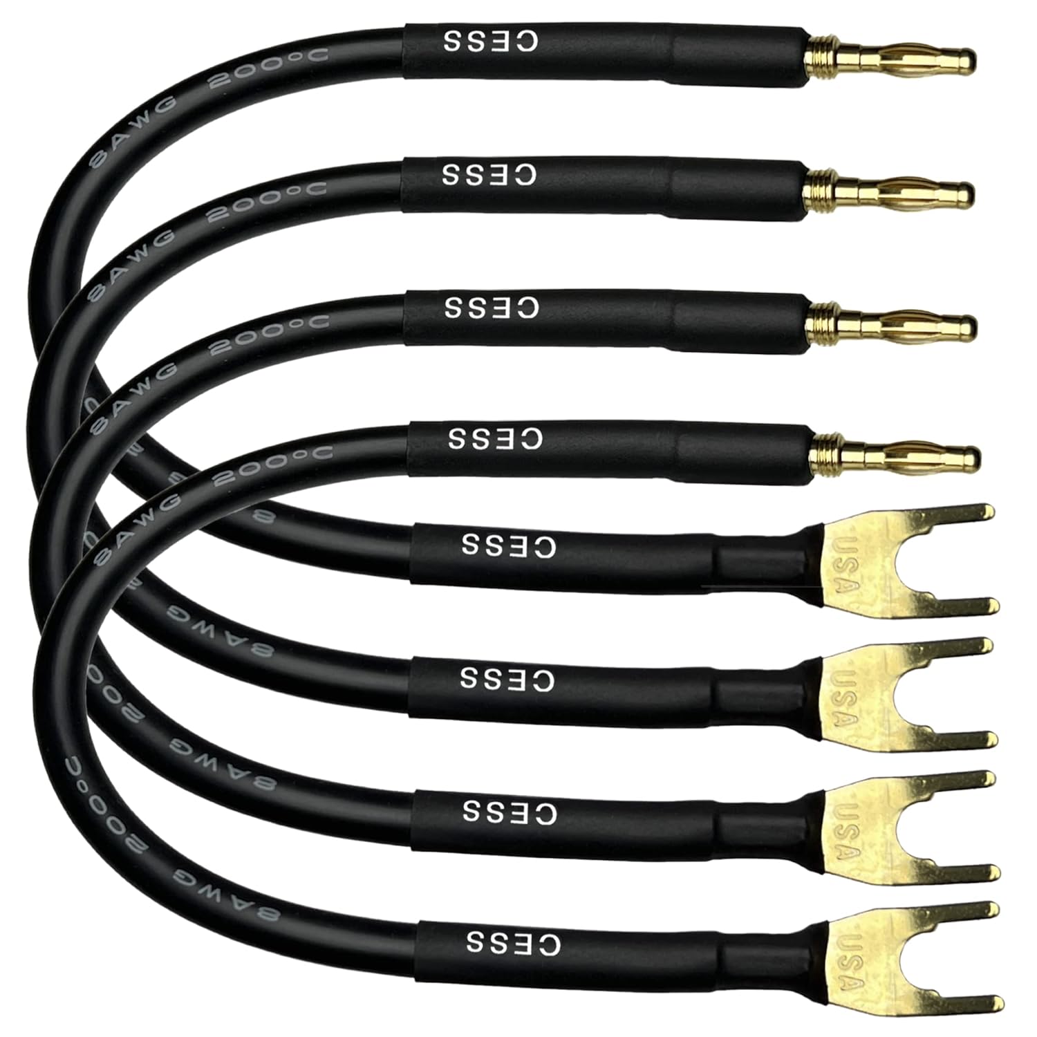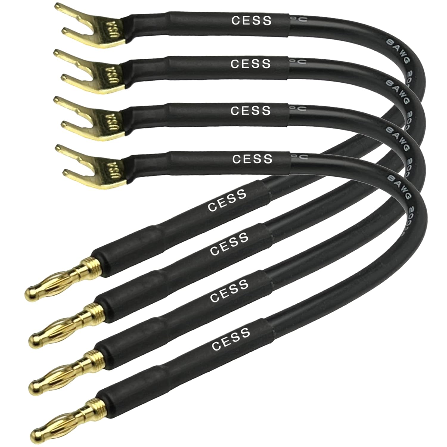 CESS-027L HiFi Speaker Cable Jumpers Wire 6-inch – Spade Plug to Banana Plug Speaker Jumper Cable – 4 Pack (Large Fork)
