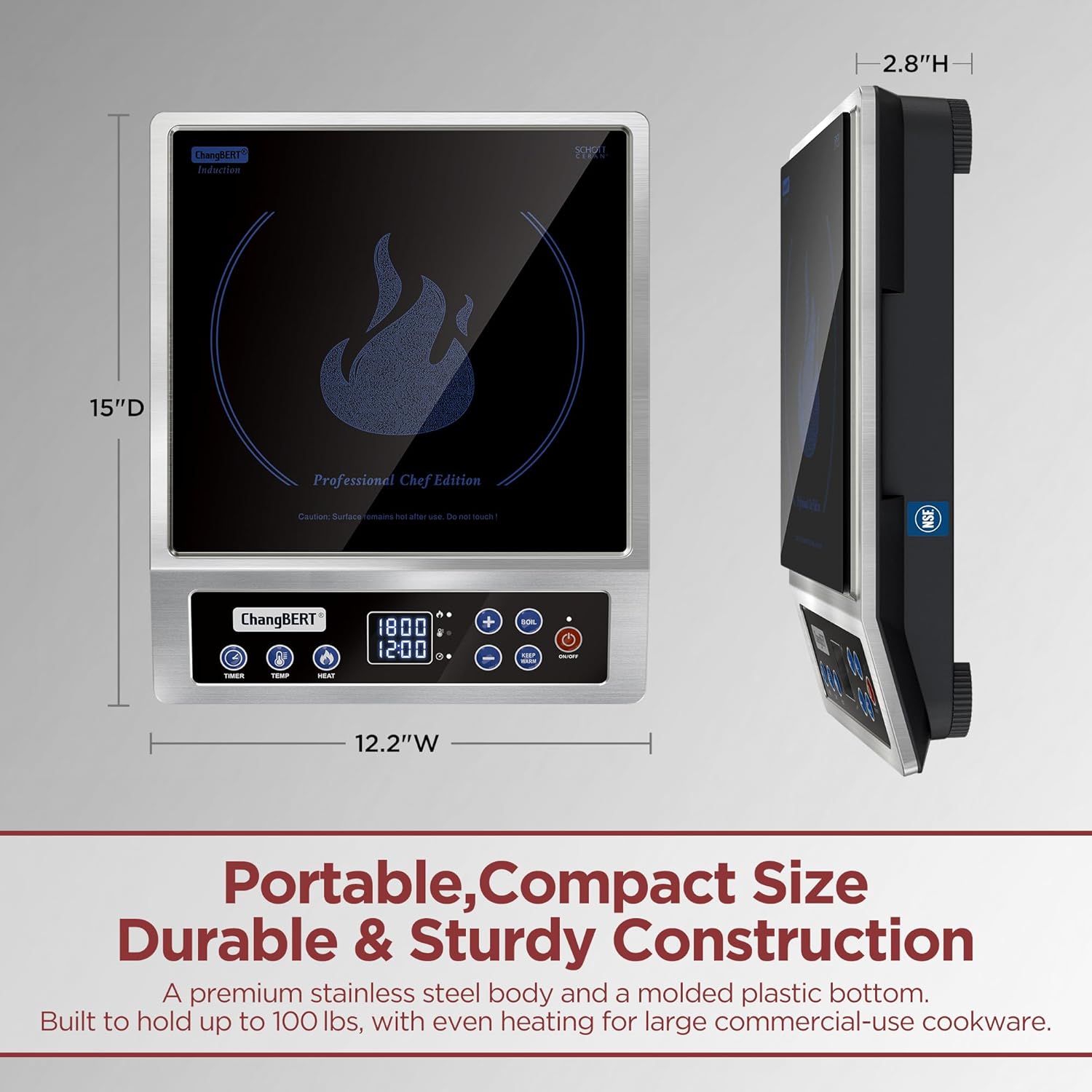 CONSISTENT HIGH-POWER PERFORMANCE – ENGINEERED FOR CONTINUOUS USE. ChangBERT’s induction hot plate is built with continuous-duty circuitry and a stabilized power system that maintains reliable high-wattage output across long cooking cycles. Upgraded power control board with dual IGBT reduces heat buildup and minimizes noise. This dependable performance sets it apart from others.