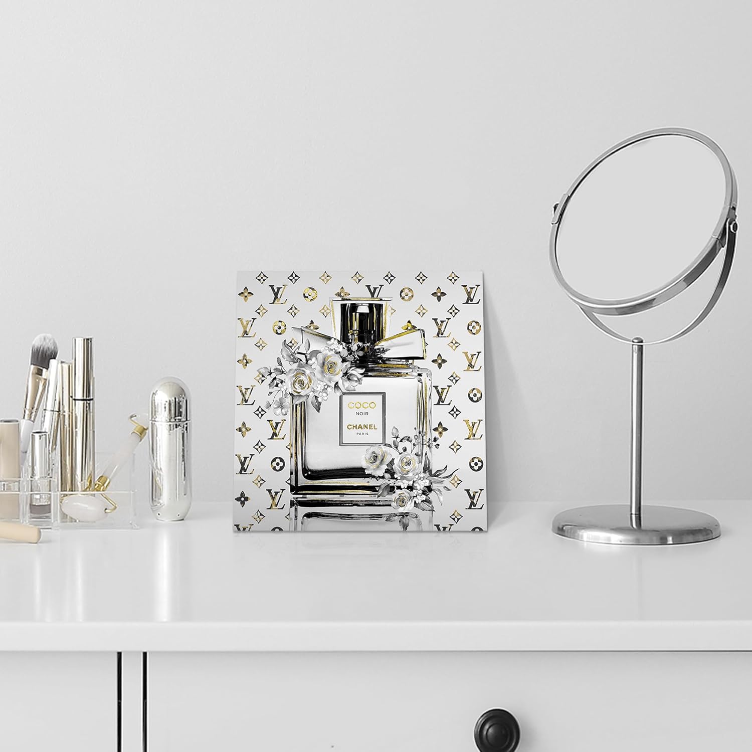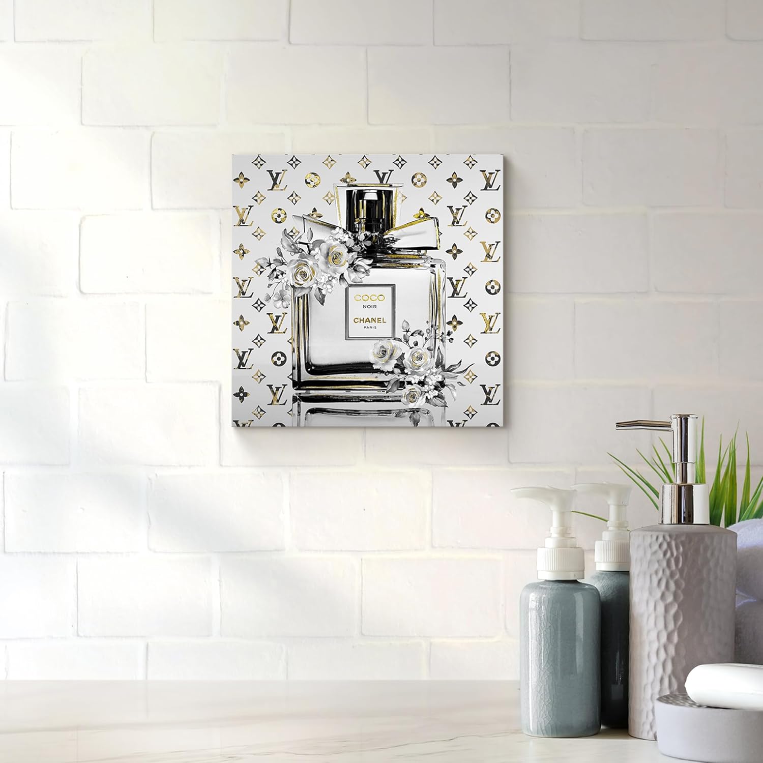 The theme of the artwork revolves around perfume bottles and flowers, adding a touch of elegance and sophistication to any room