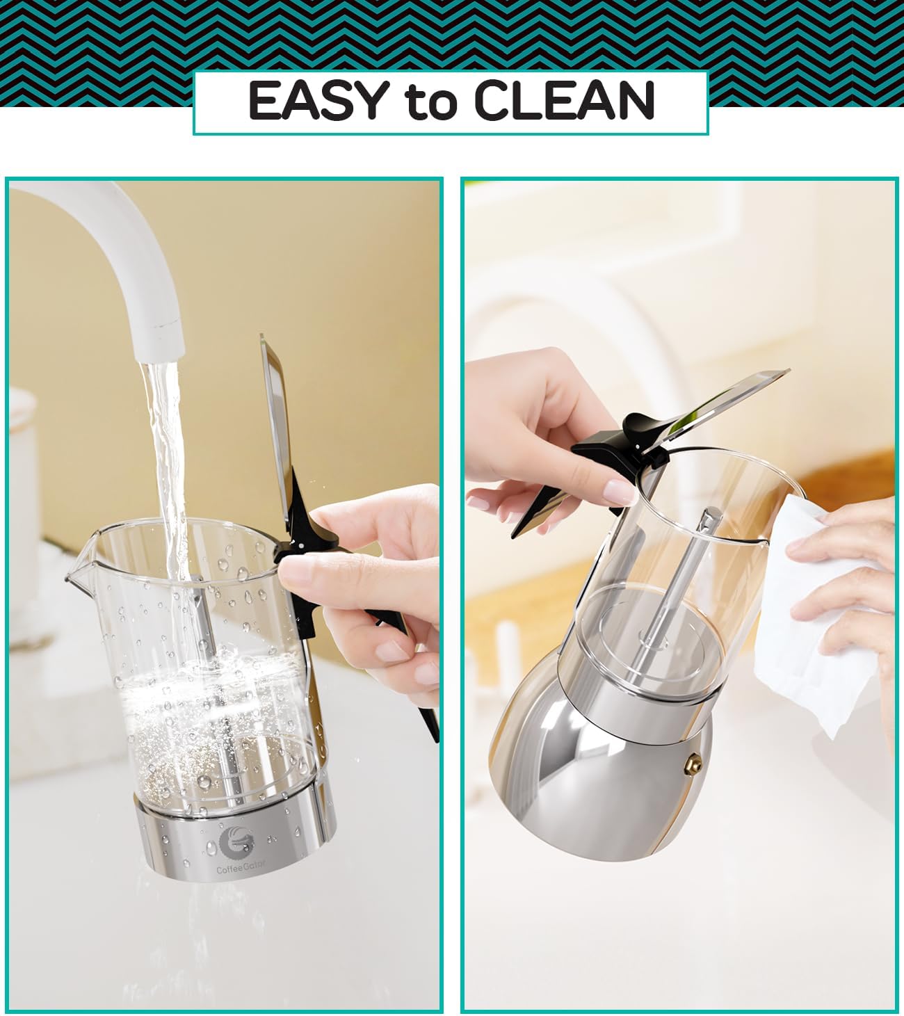 Transparent Brewing: The glass kettle that allows users to monitor the brewing process, witnessing the rich espresso color as it percolates, adding a visual delight to the coffee-making experience