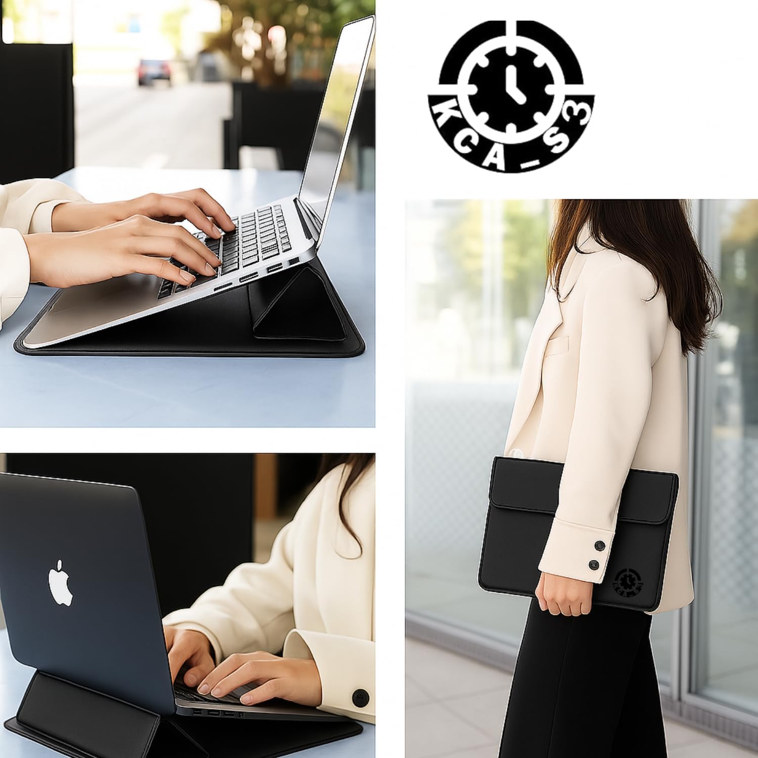 The strong magnetic closure secures your laptop within the sleeve, preventing it from slipping out. It also enables the sleeve to transform into a stable, adjustable stand.