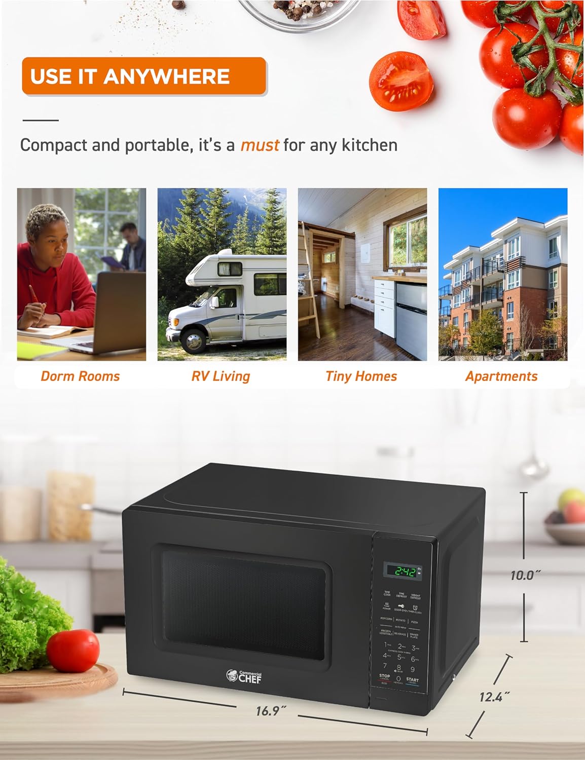 Powerful: When it comes to microwave ovens, our COMMERCIAL CHEF 700 watt microwave (23.1 lbs.) is your solution to fast & delicious food. Microwave bacon, microwave pasta, & other delicious favorites!