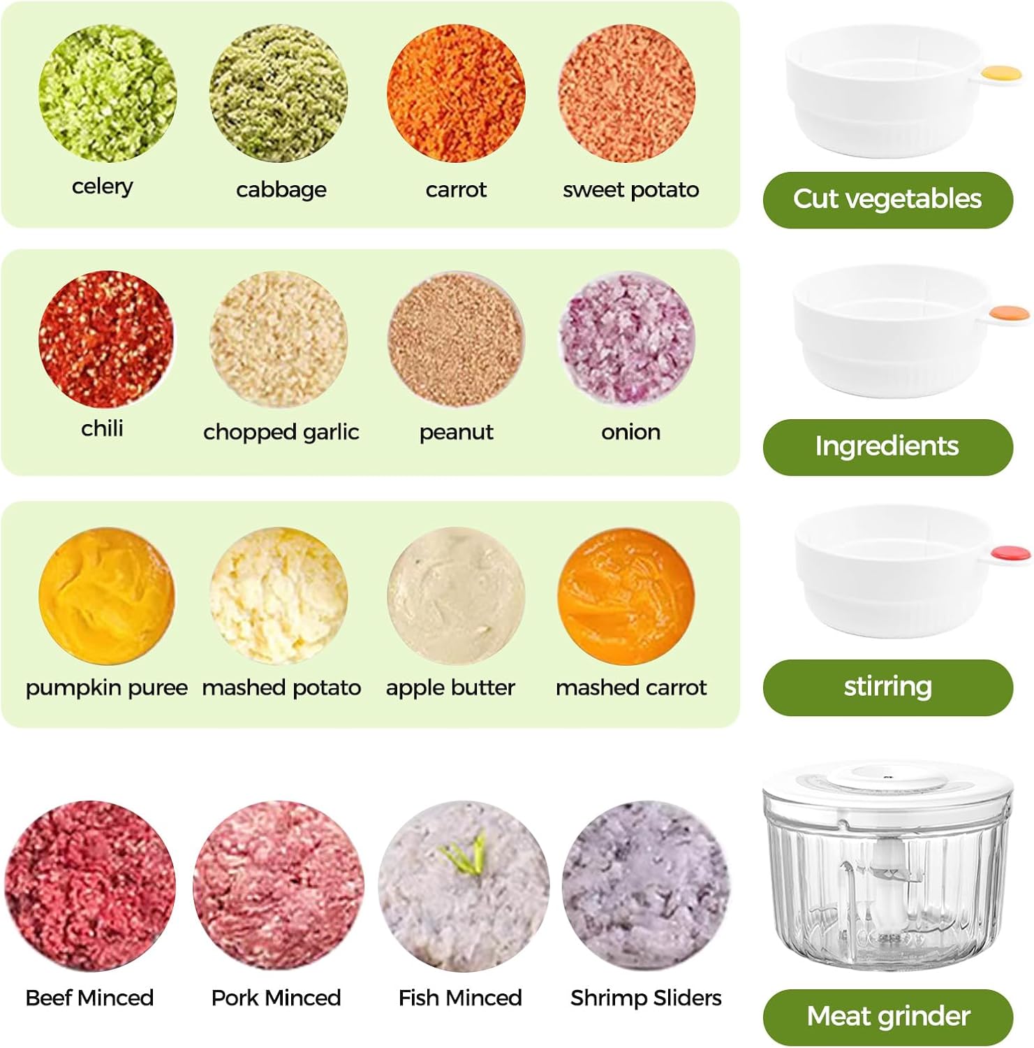 Food Processor with 2 Blades: This electric baby food processor comes with a 4-leaf blade for efficient meat grinding and a 2-leaf blade for chopping ginger, onions, fruits and vegetables, meeting your various kitchen needs