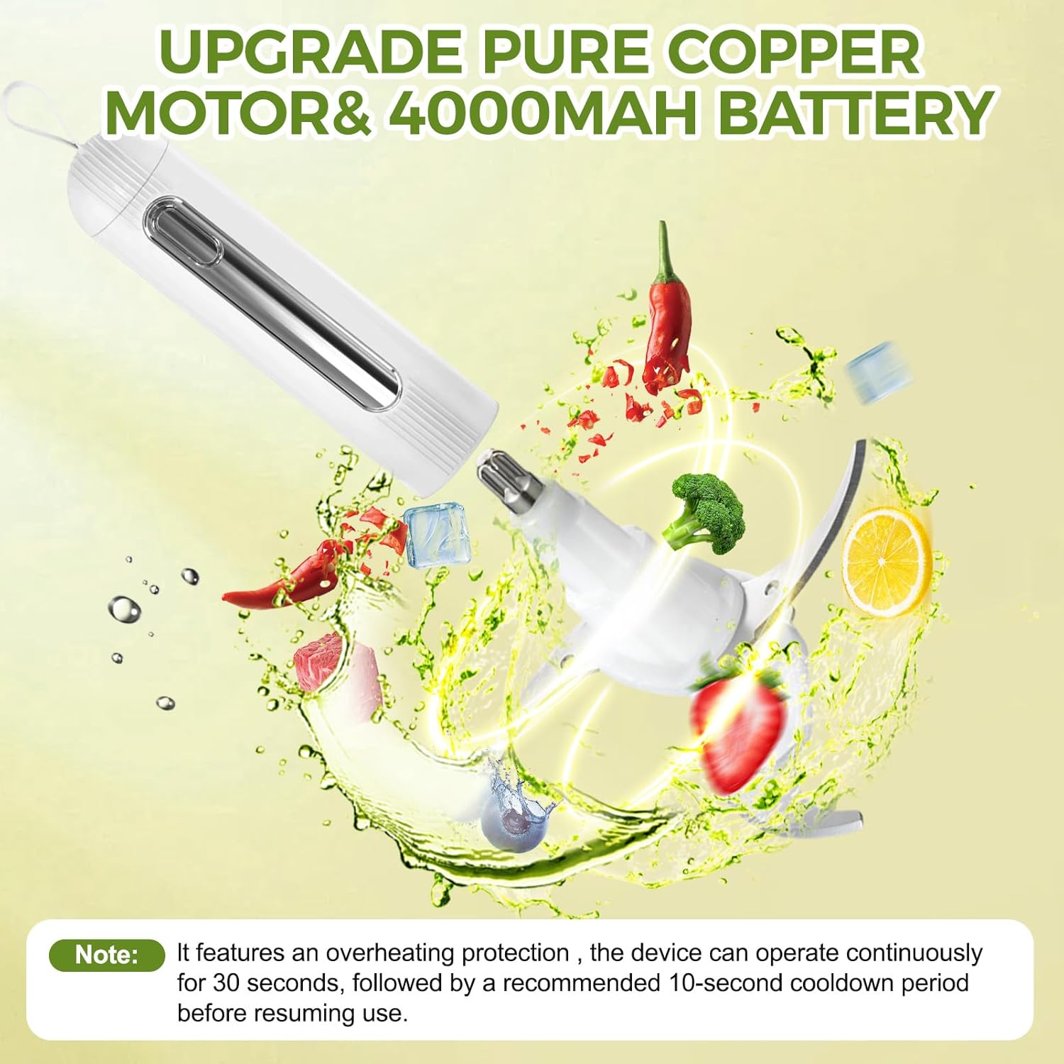 Cordless Convenience: With built-in 2000mAh high capacity battery, this cordless food processor charges fully in 4 hours and allows you to chop anywhere, eliminating the dependence of power socket