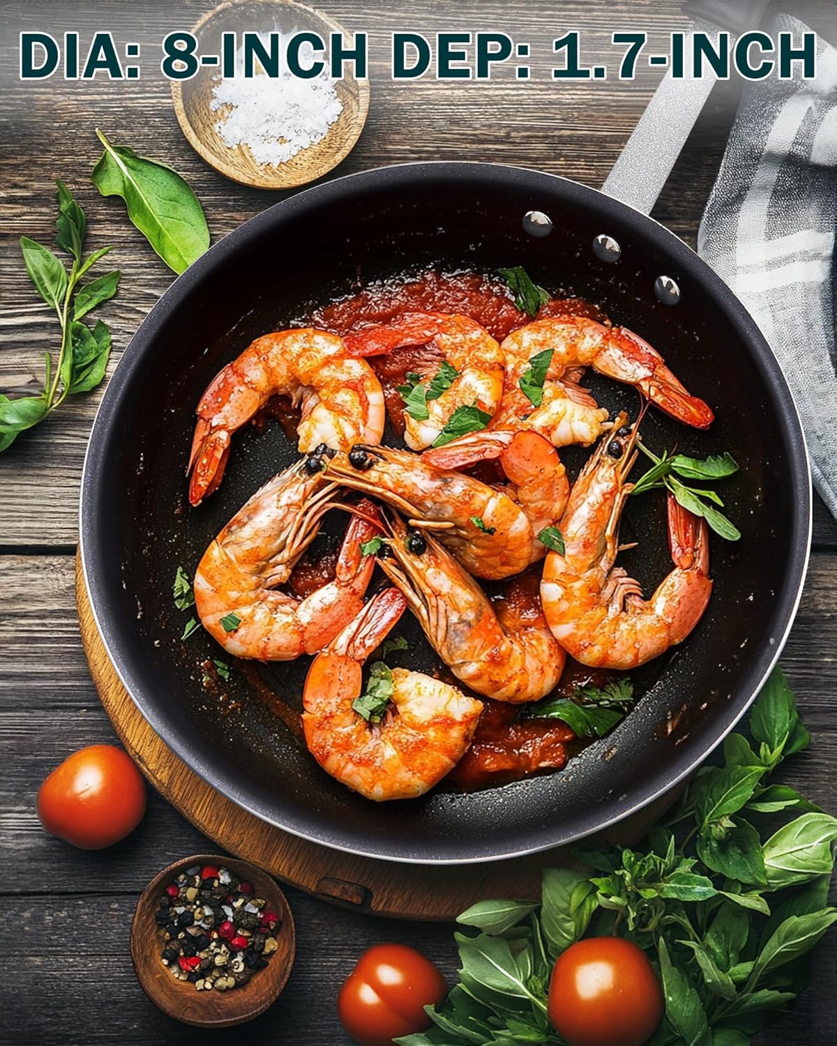 Enjoy cooking: The 8 inch non stick frying pan is ideal for frying eggs, making omelets, sautéing vegetables, or searing single servings of meat