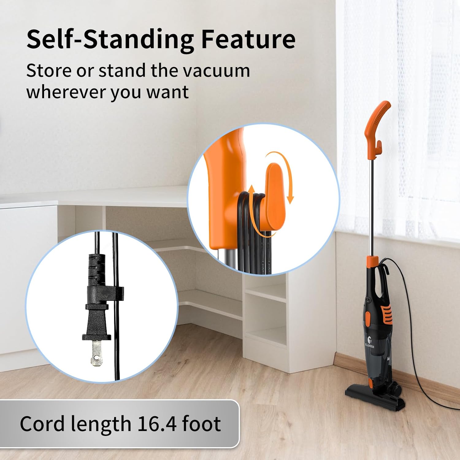 High Efficiency Filter: Corded stick vacuum cleaner has a multi-layer high-density filtration system that not only removes more than 99.99% of dust, pollen, and allergens but also effectively prevents them from returning to the indoor air and causing secondary pollution.(Note: Make sure the HEPA filter is completely dry before reassembling it)