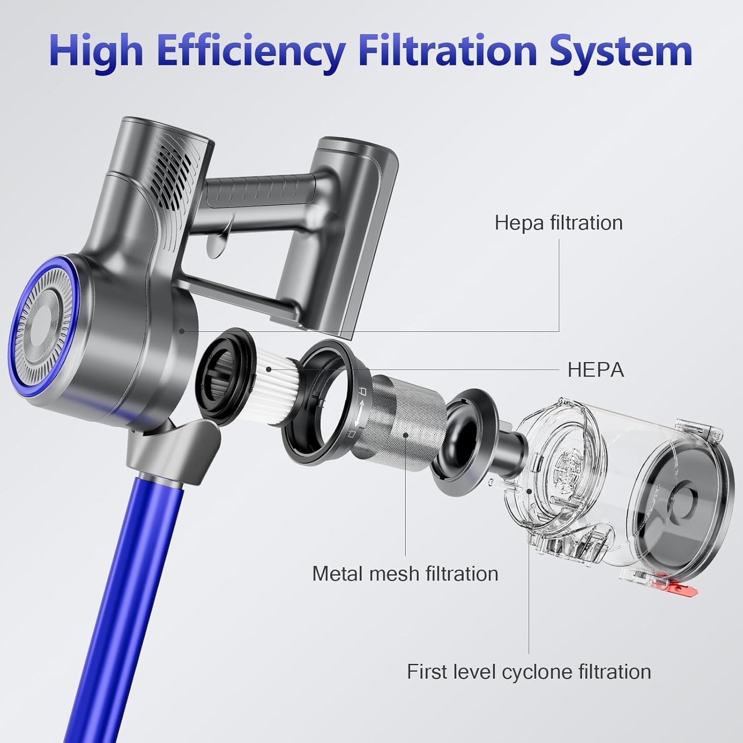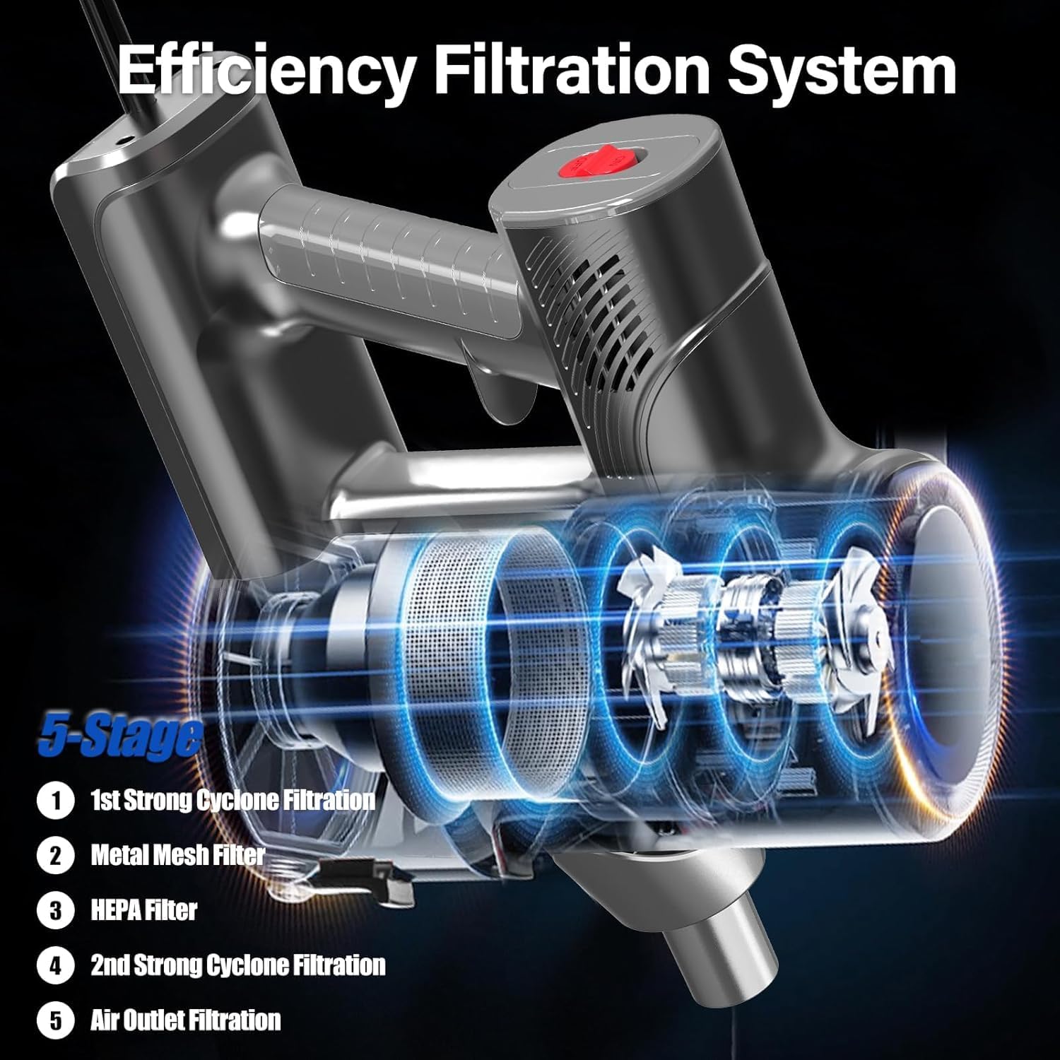 🍃【Efficient filtration system】Corded Vacuum cleaner features a fully sealed cyclone filtration system with a HEPA filter and stainless steel filter, capturing up to 89.99% of fine dust particles . It effectively prevents secondary pollution and ensures clean, fresh air