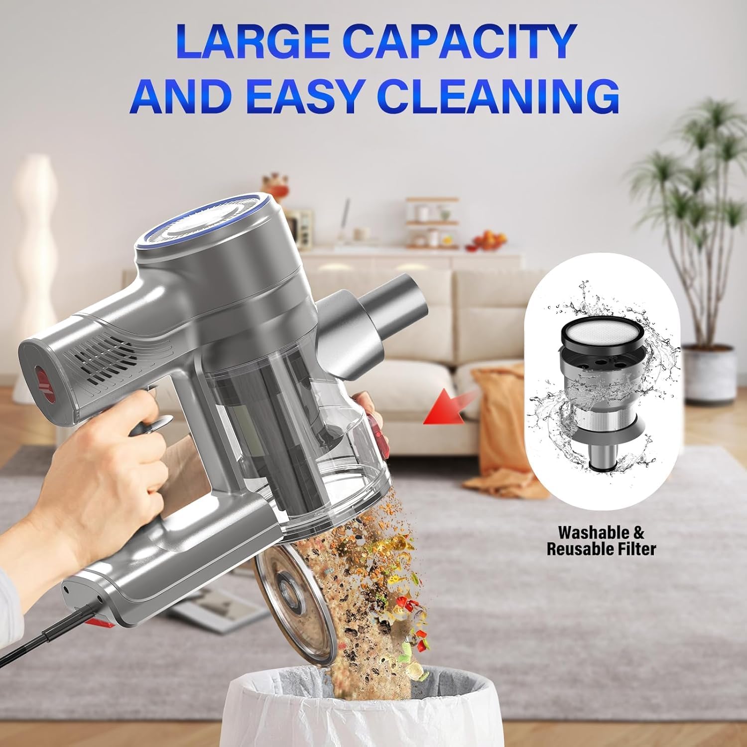 🧰【2-IN-1Versatility】The stick vacuum Cleaner with a variety of suction tools, including: floor nozzle, crevice tool and 2 in 1 brush,can easily switch to handheld vacuum with various attachments allowing you to clean everywhere in your home